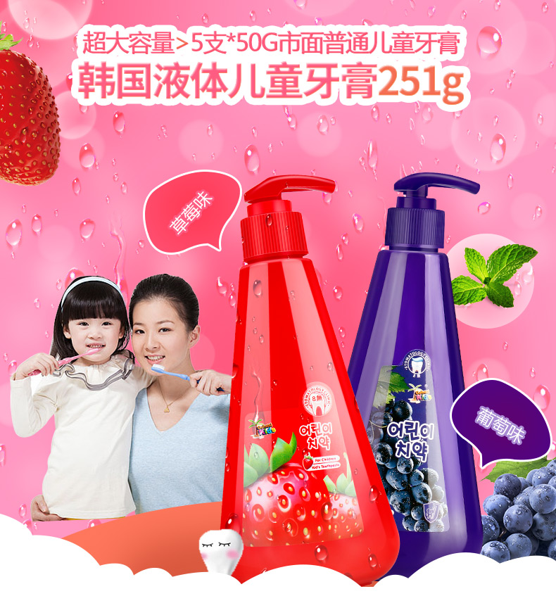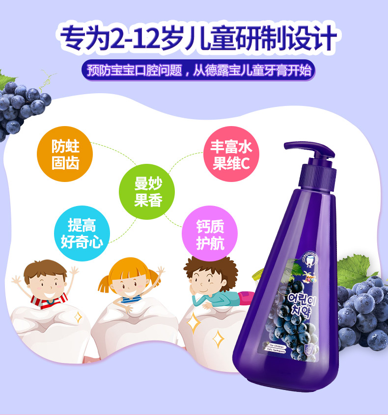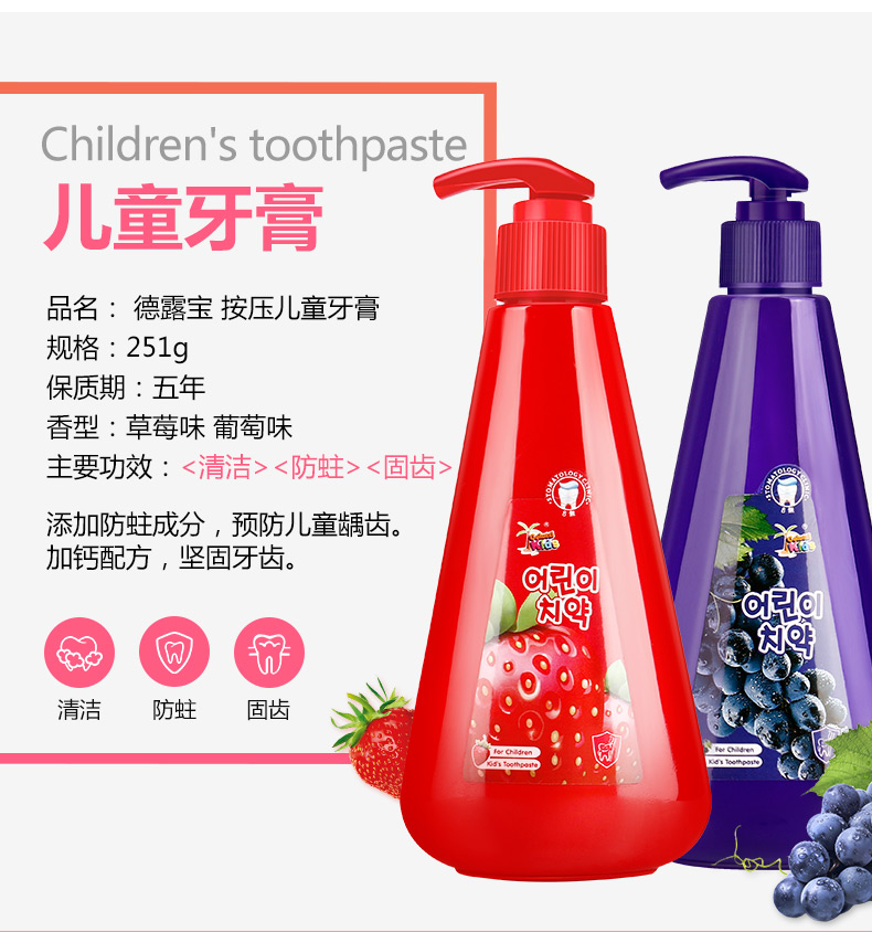 德露宝(Colutti Kids)儿童牙膏草莓味251g+葡萄味251g(单位:套) 甜莓味