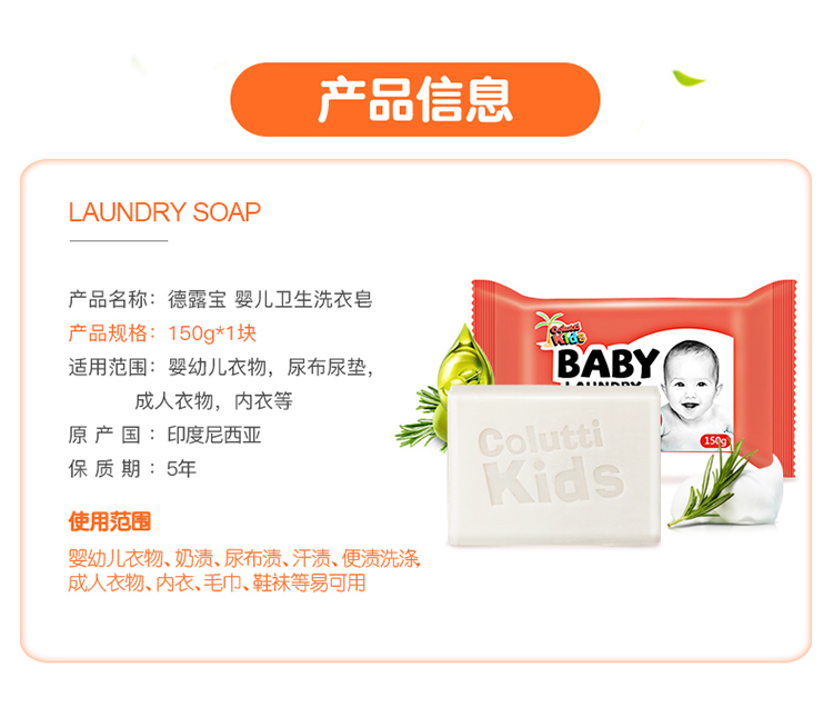 德露宝(Colutti Kids)婴儿卫生洗衣皂150g*3块(单位:套) 红色
