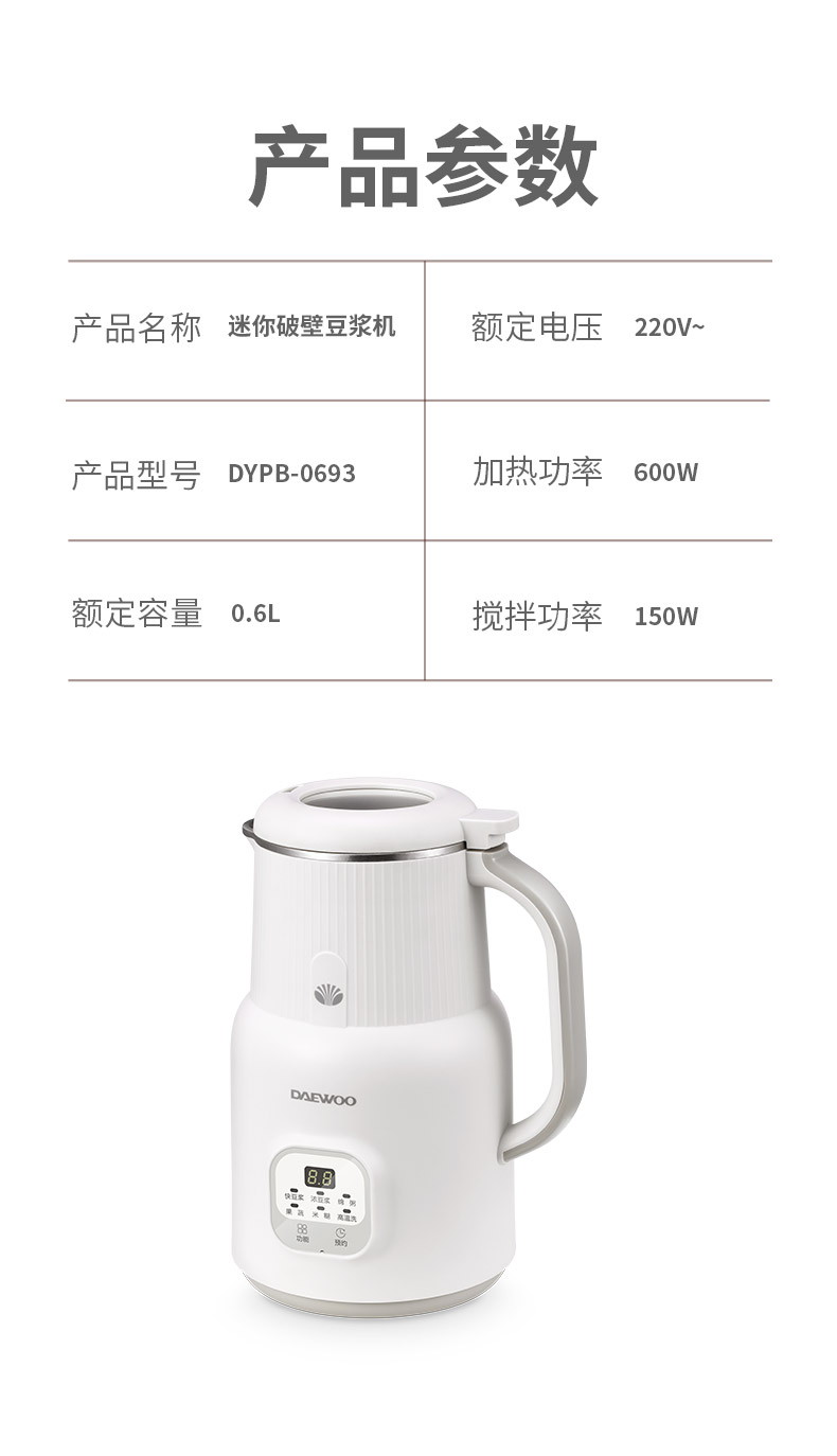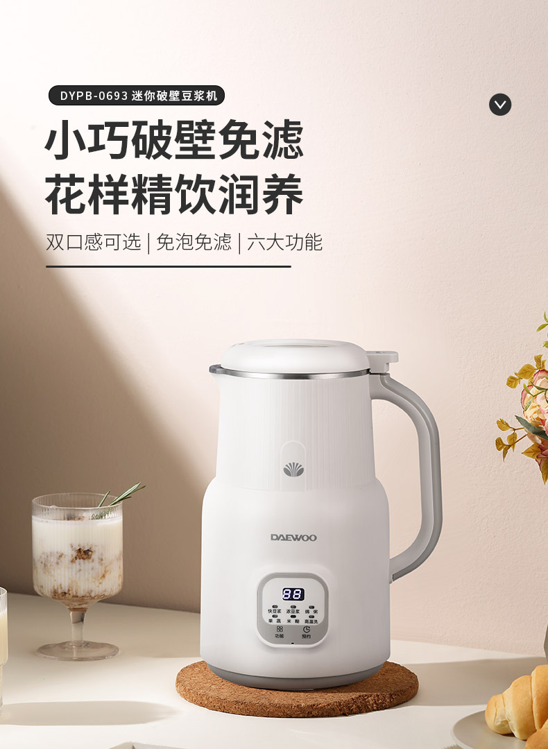 大宇(DAEWOO) 家用多功能迷你破壁豆浆机 DYPB-0693(单位:台) 星韵白