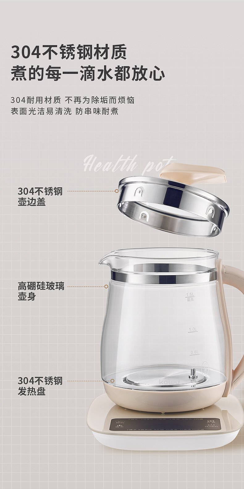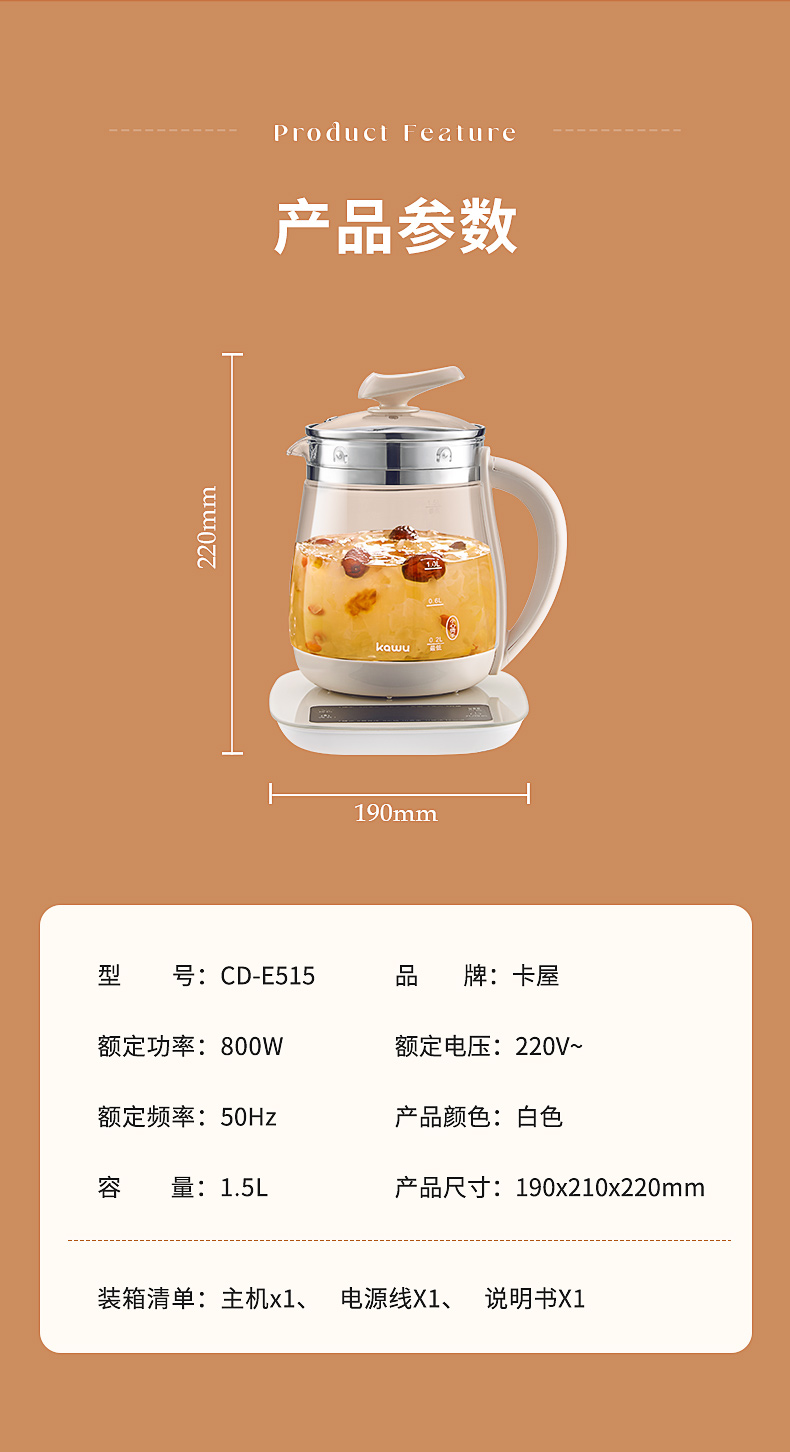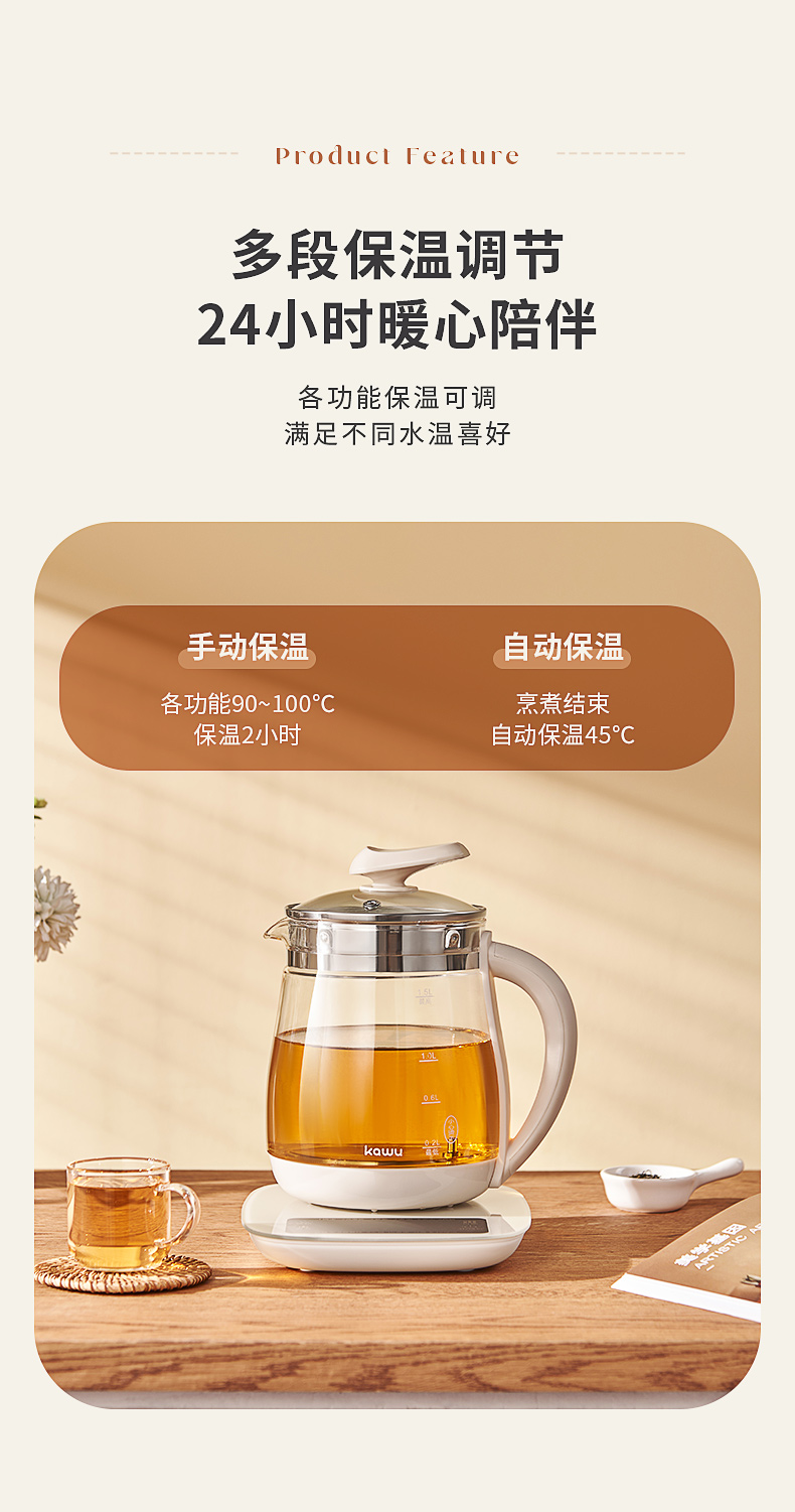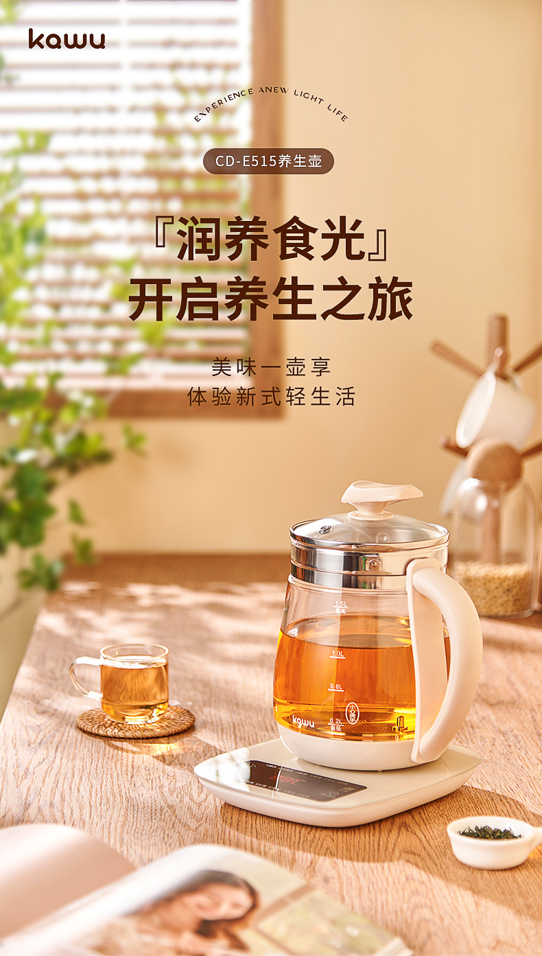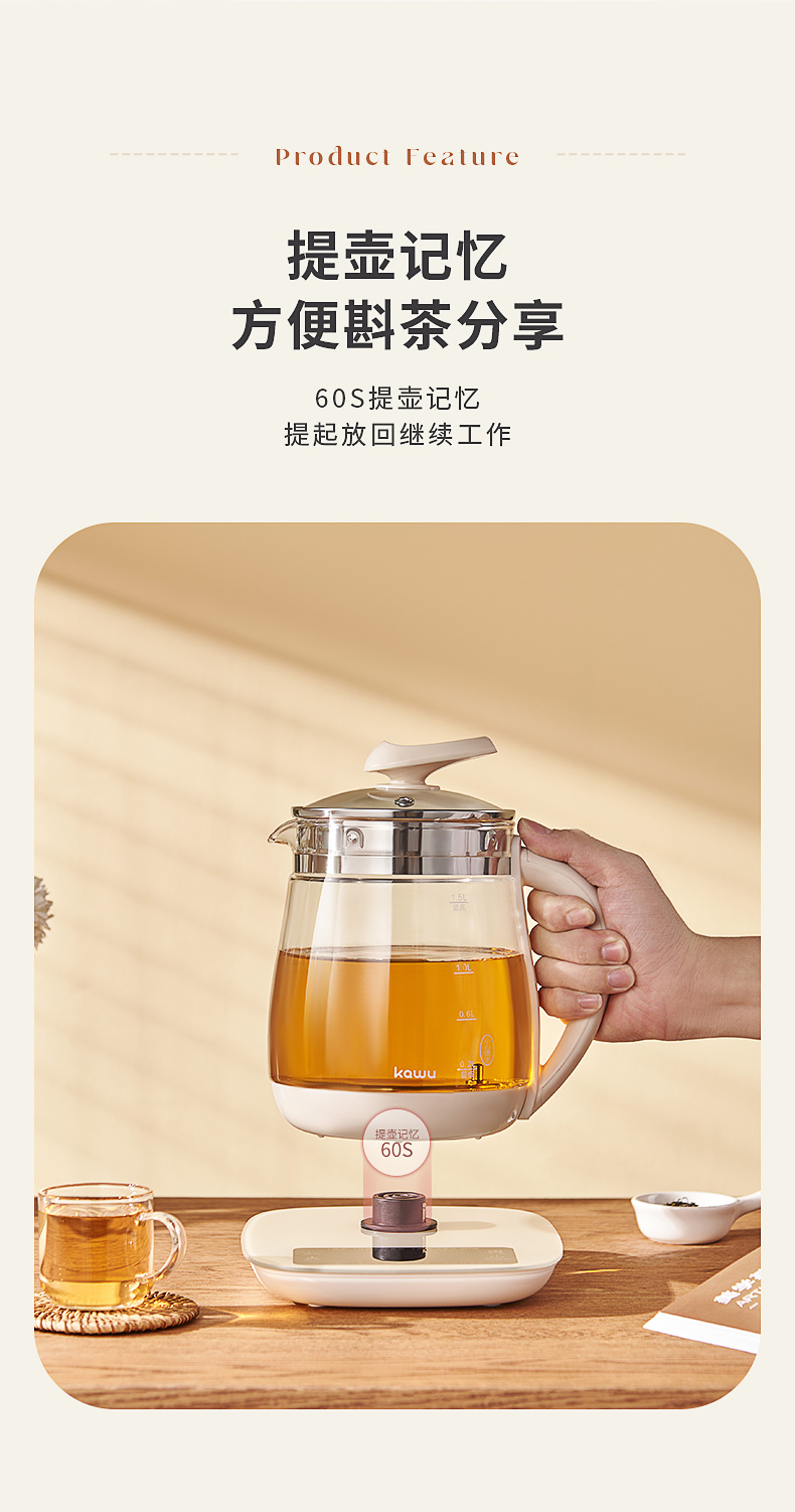 卡屋kawu 养生壶智能煮茶壶电热水器1.5L CD-E515(单位:台) 象牙色