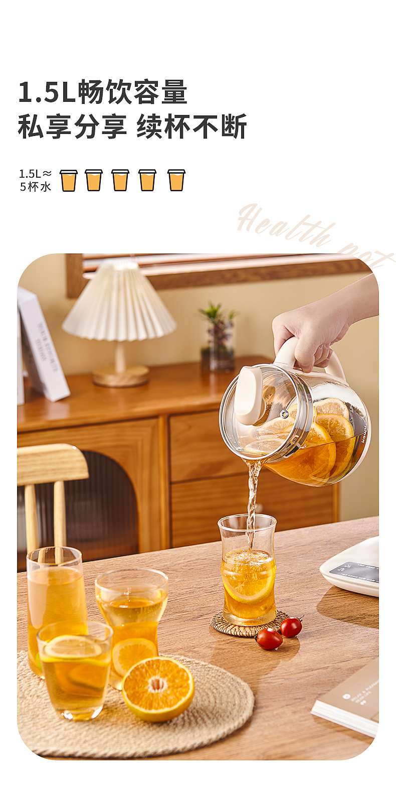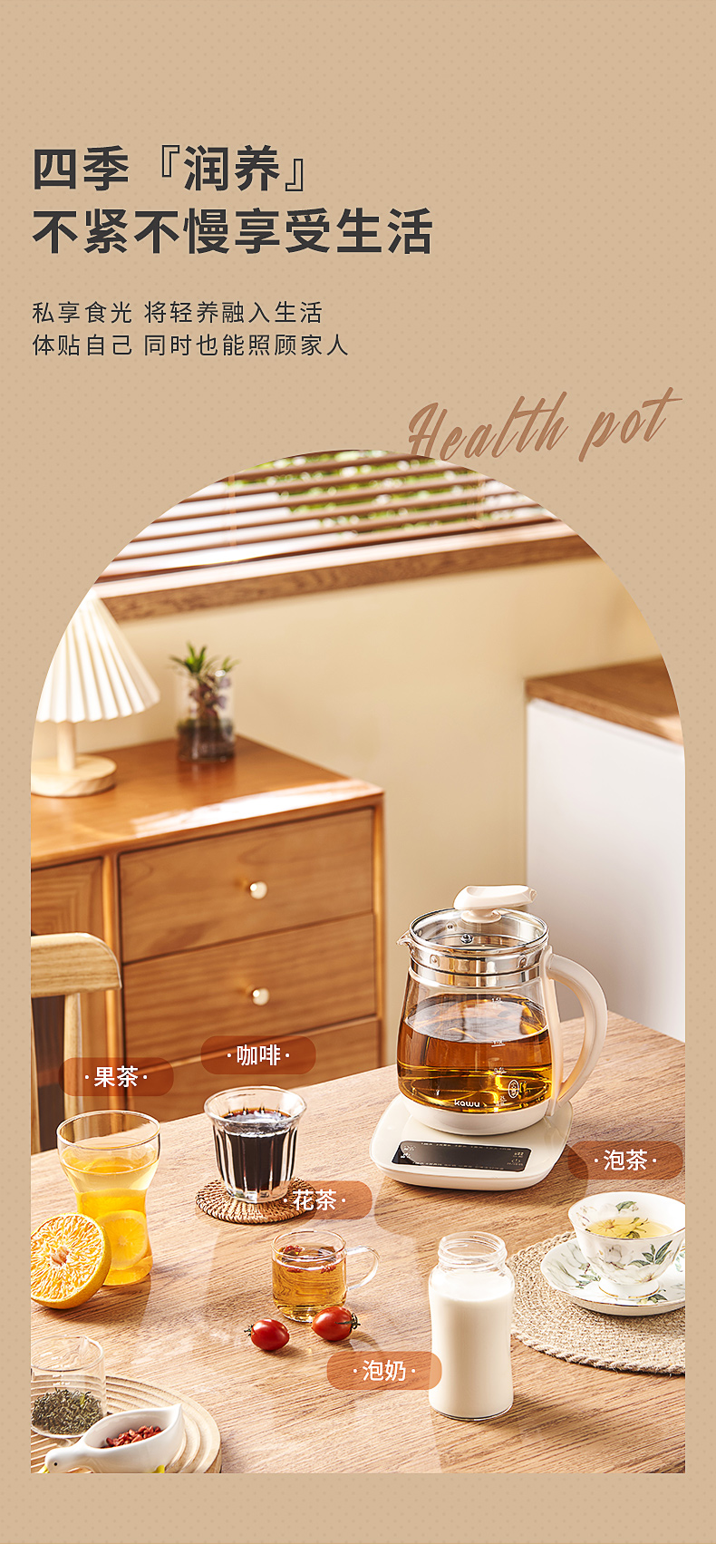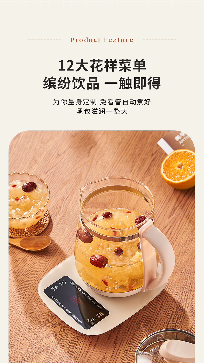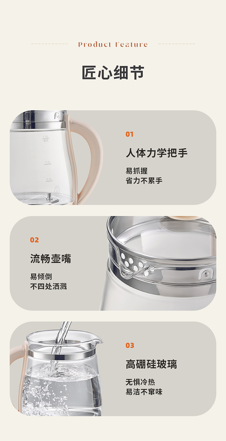 卡屋kawu 养生壶智能煮茶壶电热水器1.5L CD-E515(单位:台) 象牙色