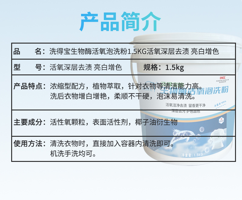 洗得宝 生物酶活氧泡洗粉 1.5kg/桶 活氧深层去渍 亮白增色XDB-PXF3233(计价单位:桶) 宝石蓝