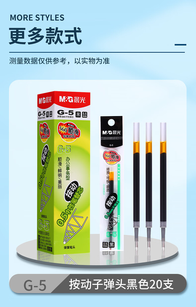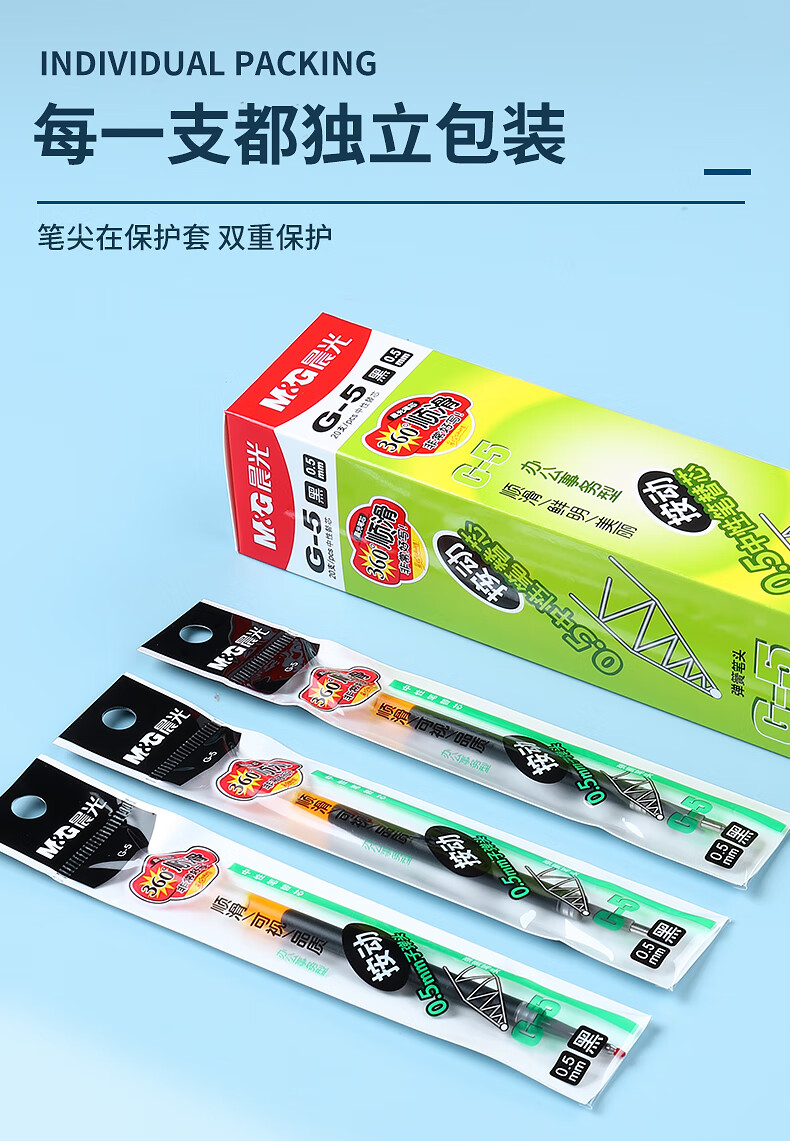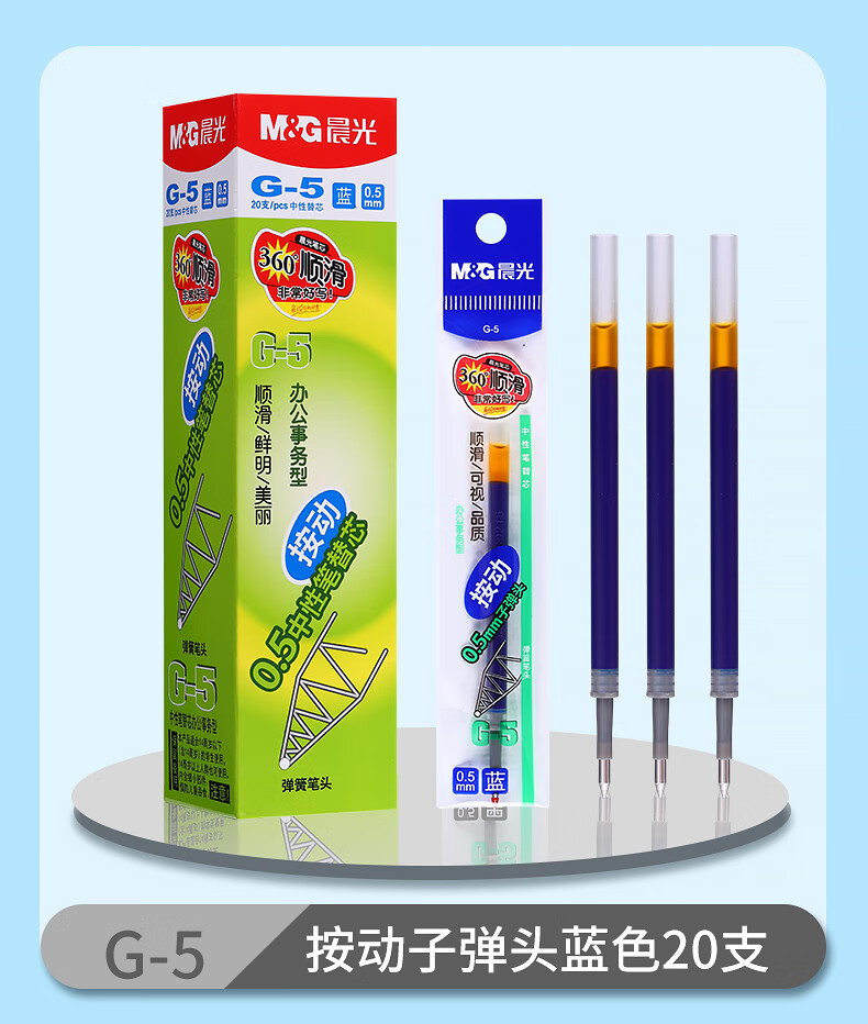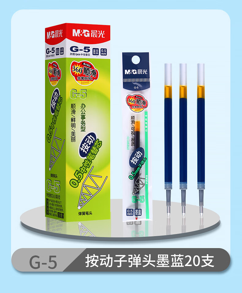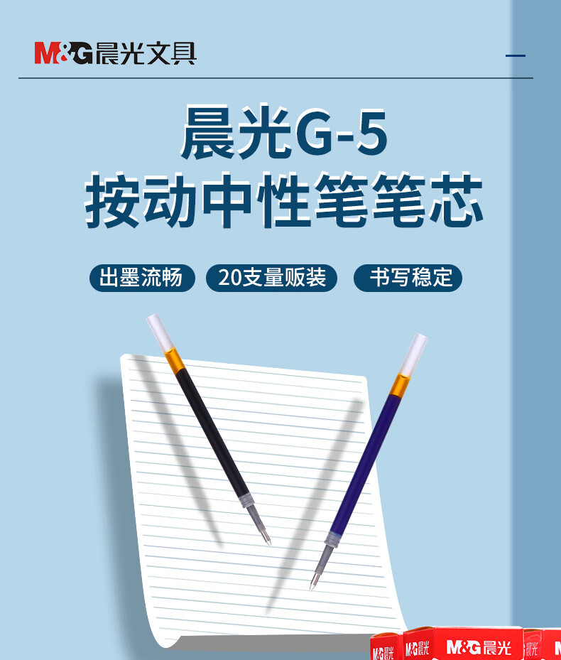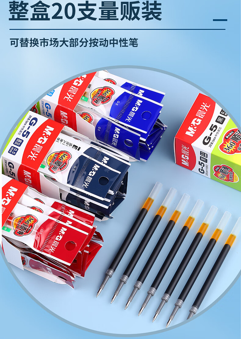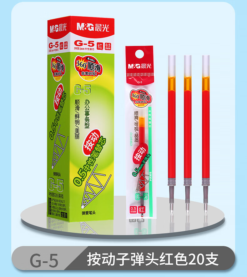晨光(M&G)中性替芯G-5黑0.5AGR67T02按动签字笔20支/盒 红色