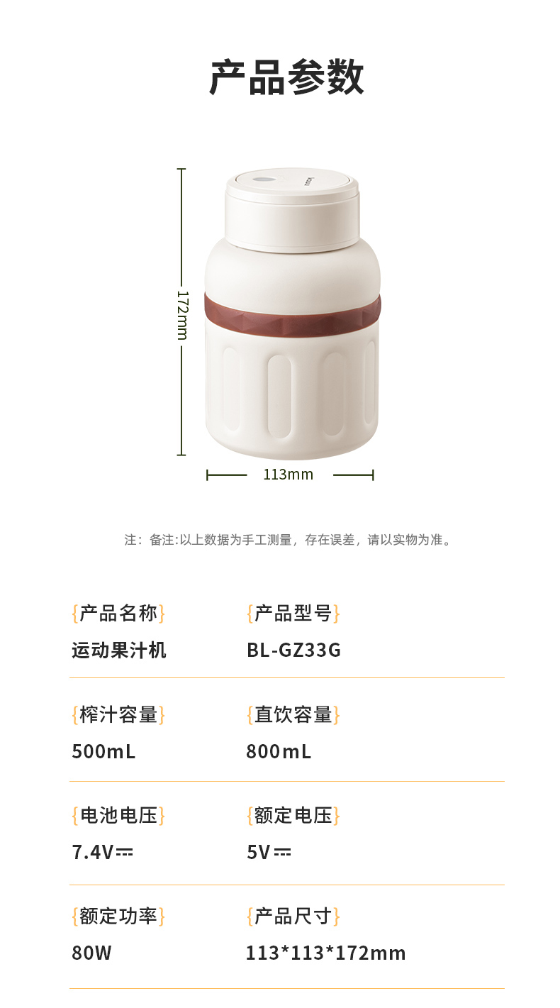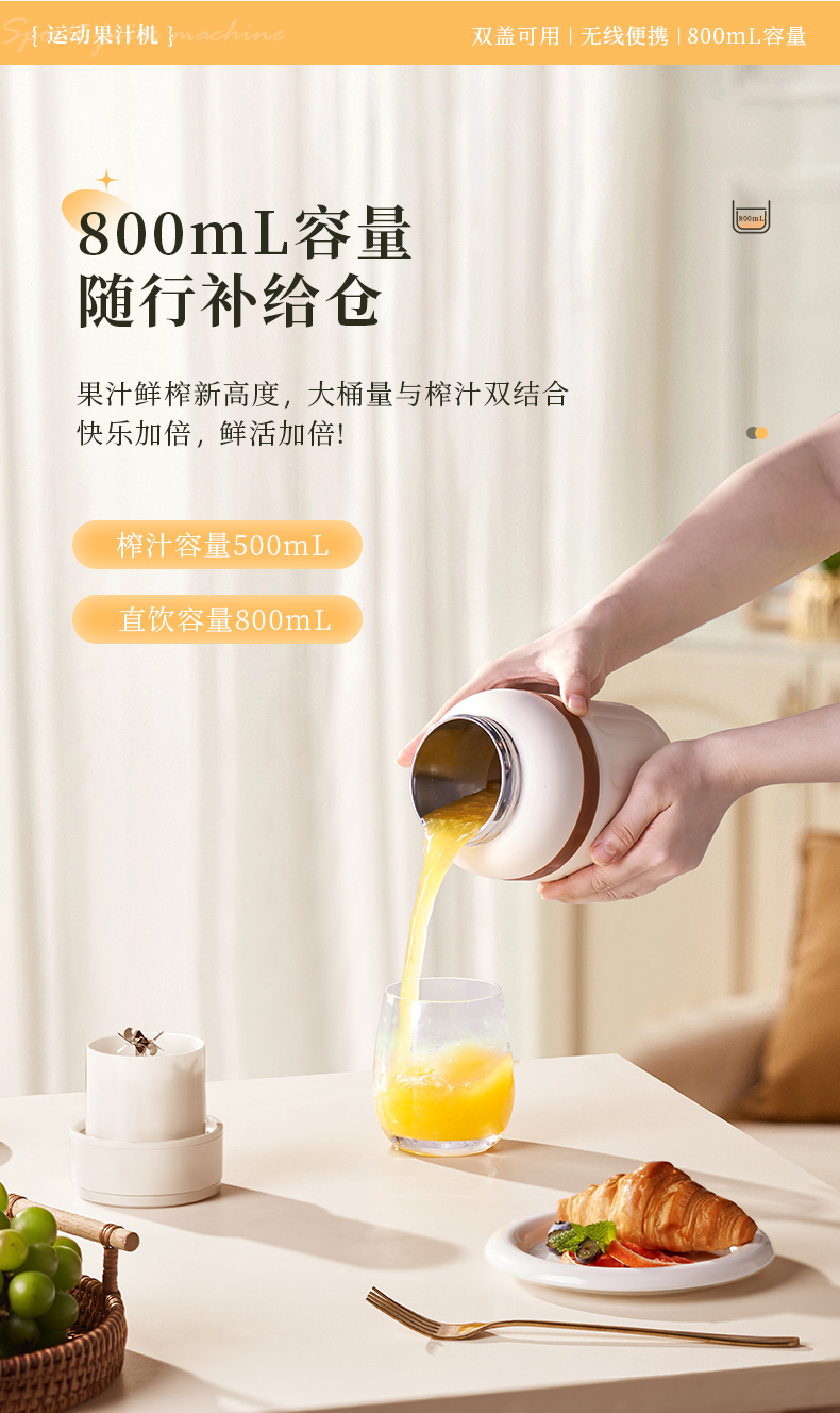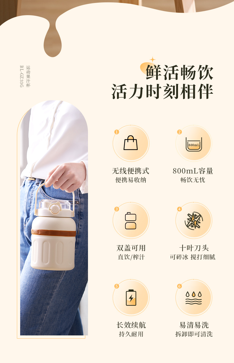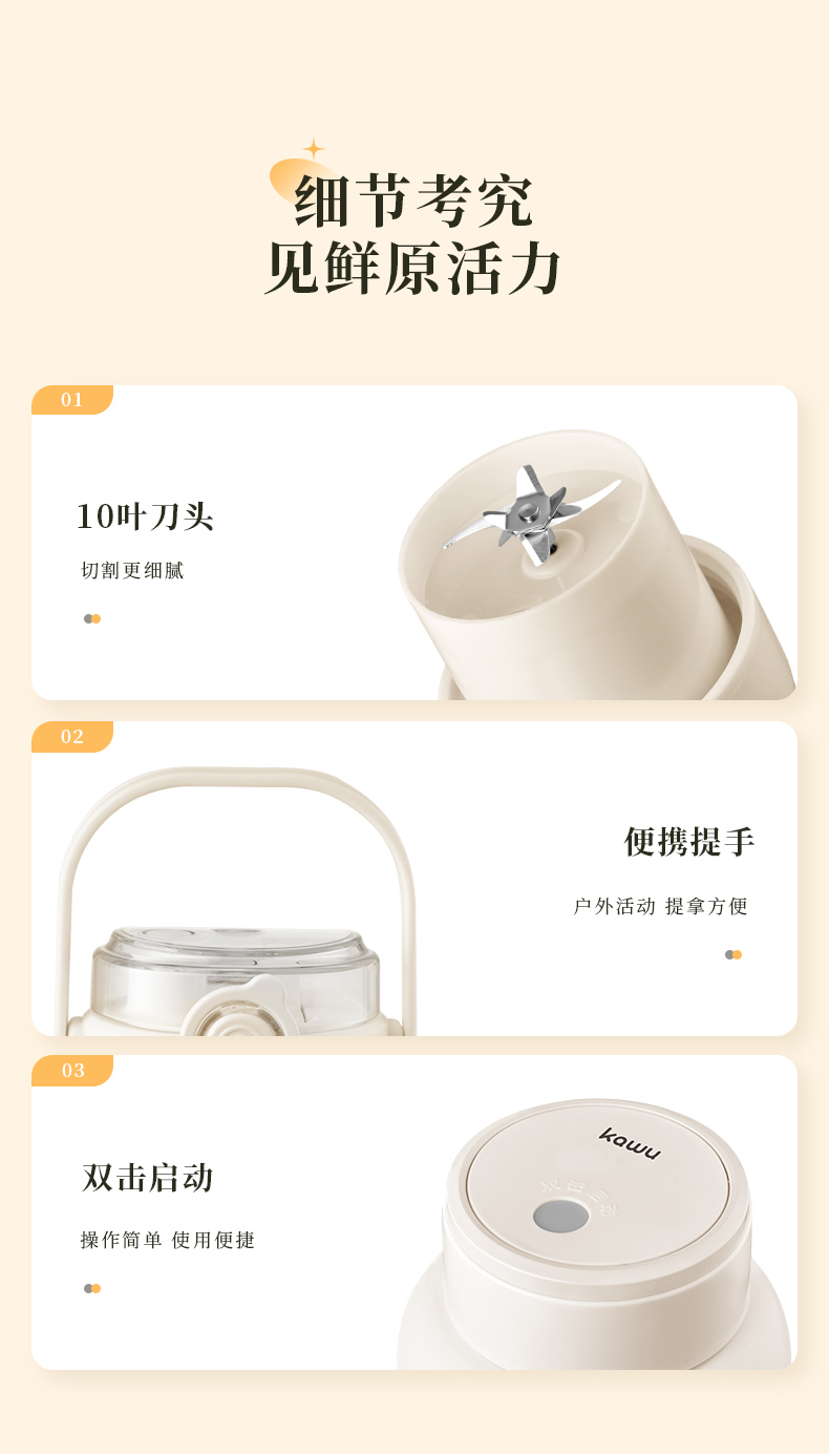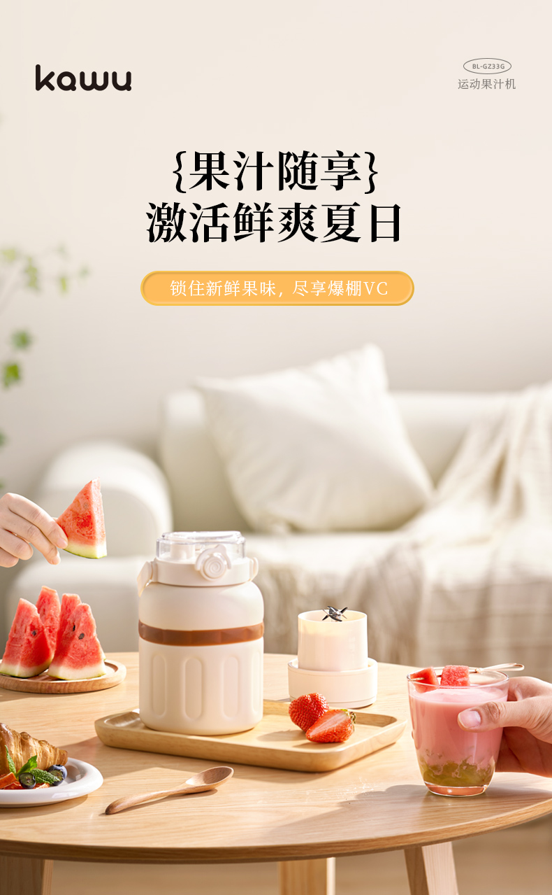卡屋(kawu)便携式无线果汁机0.8L BL-GZ33G(单位:台) 本白色