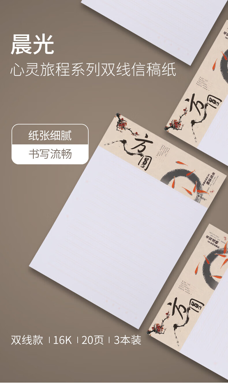 晨光(M&G) 信稿纸草稿本学生用空白非a4实惠装16开白纸 APYKF264-双线信 12本白色 白色