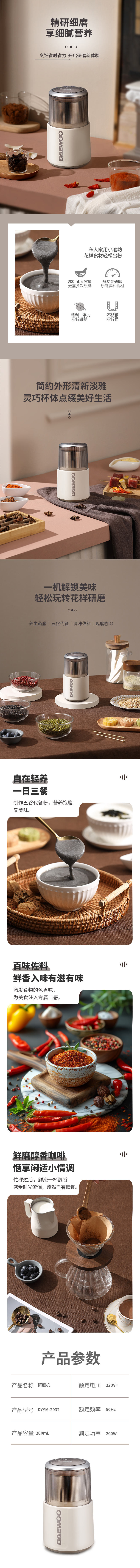 大宇(DAEWOO)家用多功能研磨机DYYM-2032(单位:台) 伯爵白