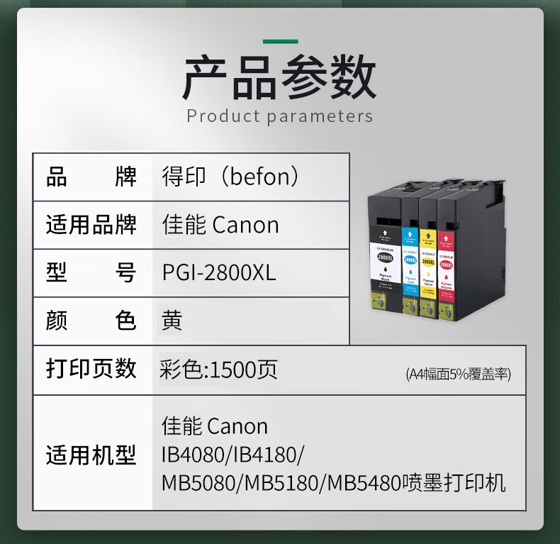 得印(befon) PGI-2800XL墨盒 适用佳能MB5180 MB5480 计价单位:支 黄色
