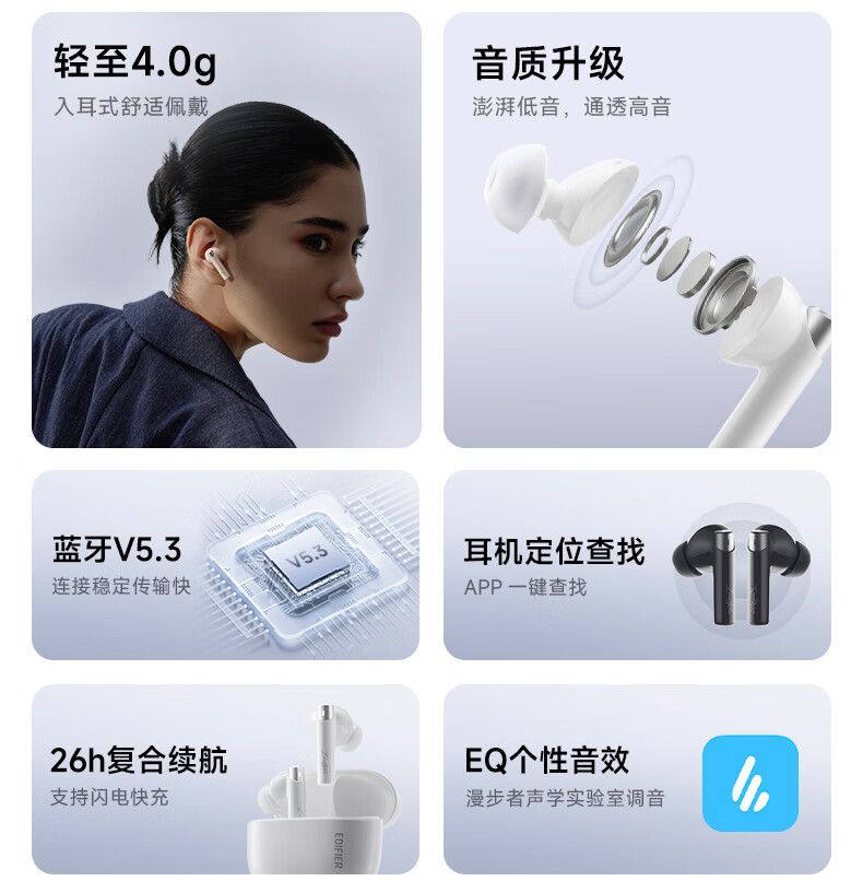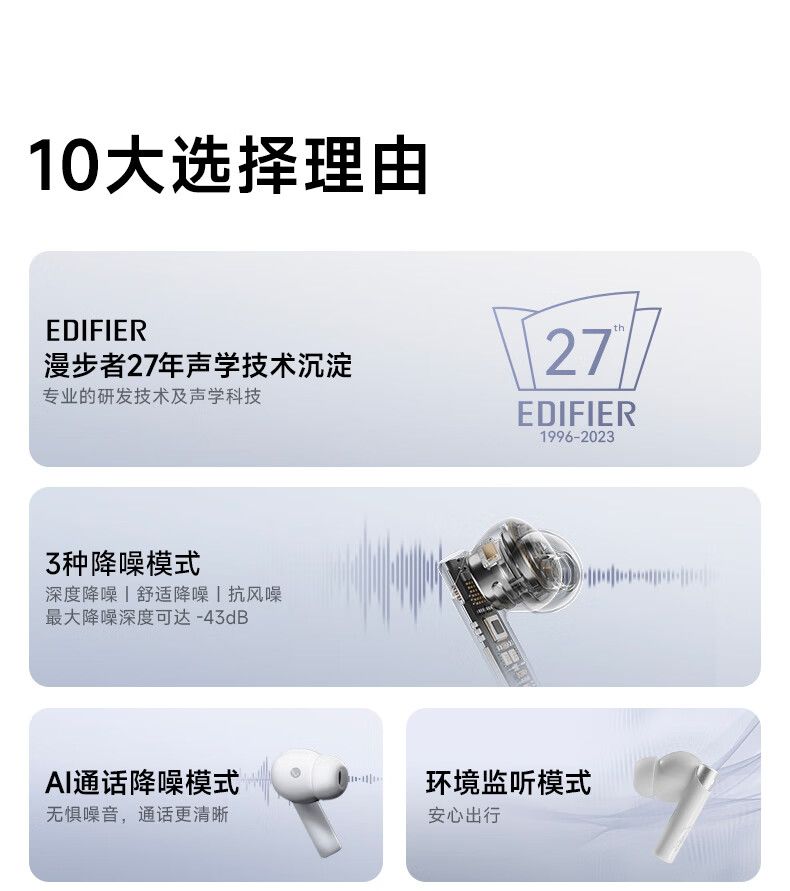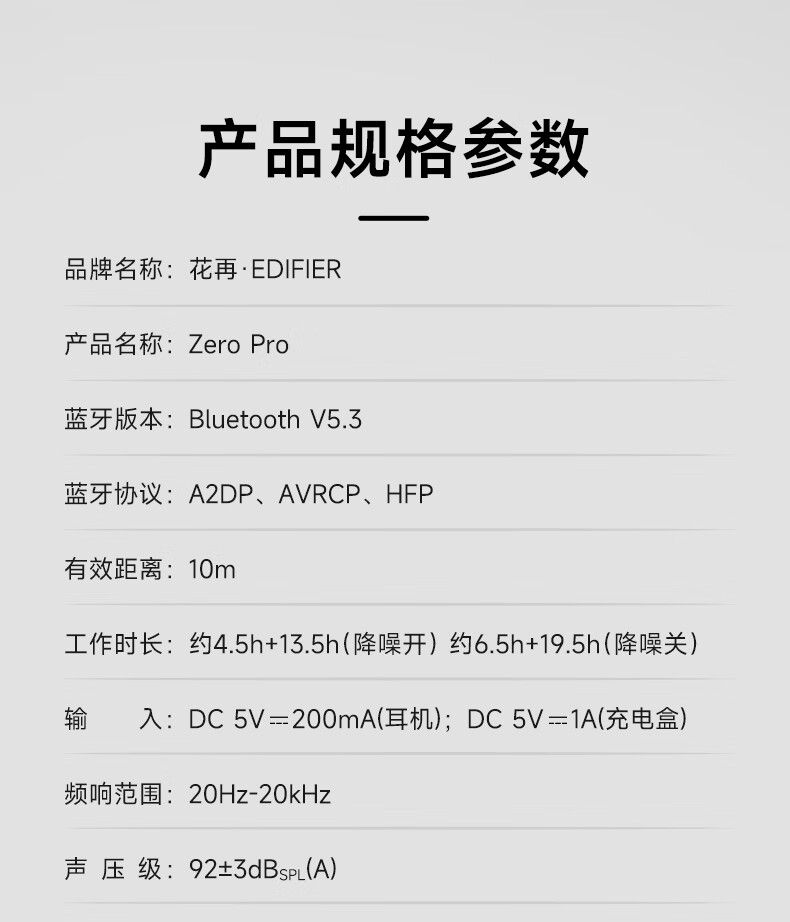 漫步者 Zero Pro 蓝牙5.3 入耳式降噪耳机 暮灰(单位:副)