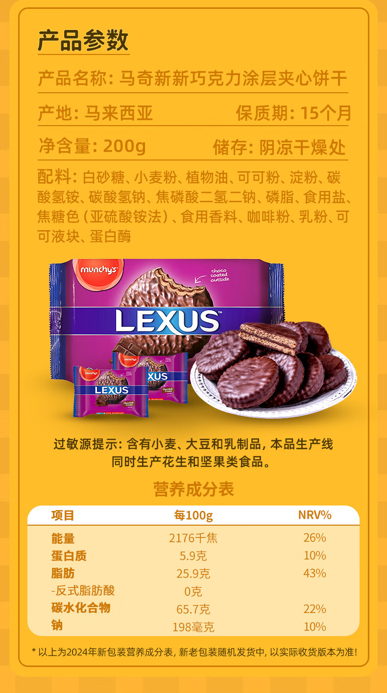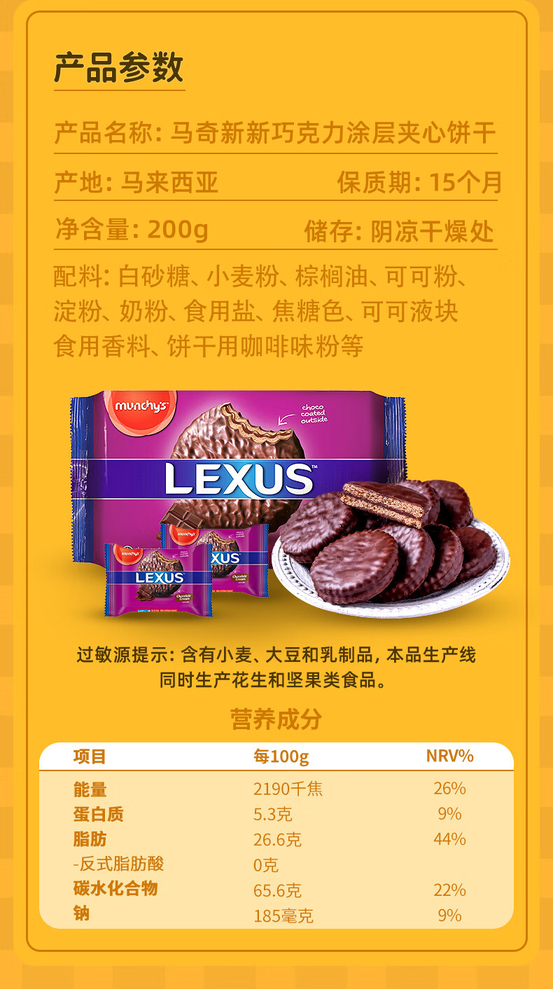 马奇新新力士巧克力味涂层夹心饼干 200g*1袋 紫色