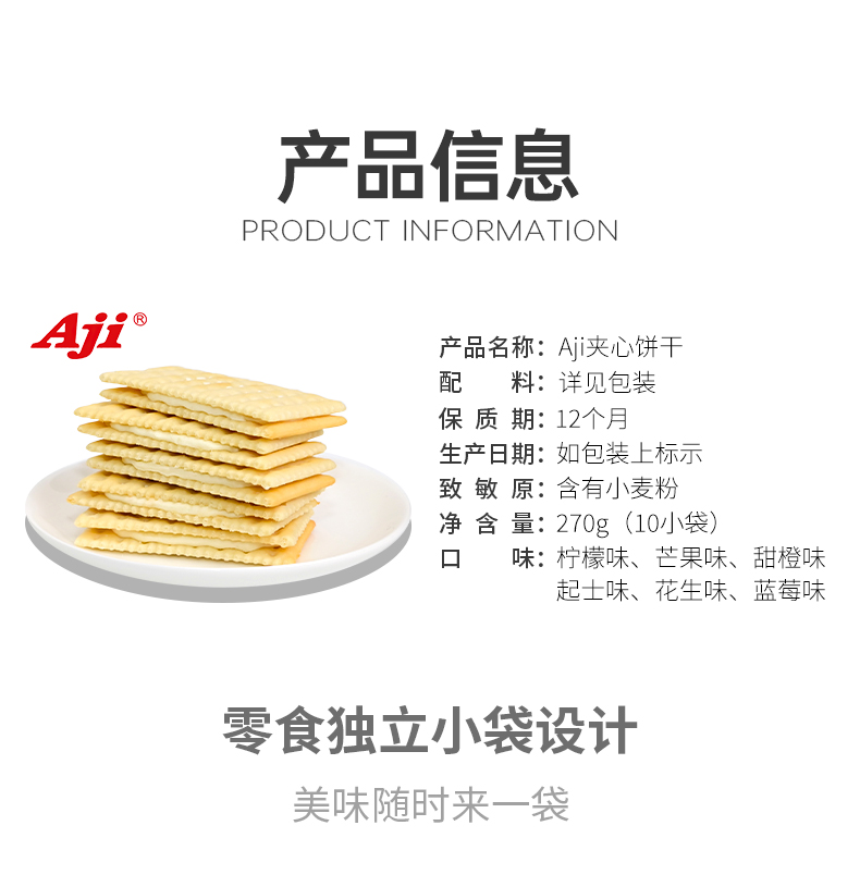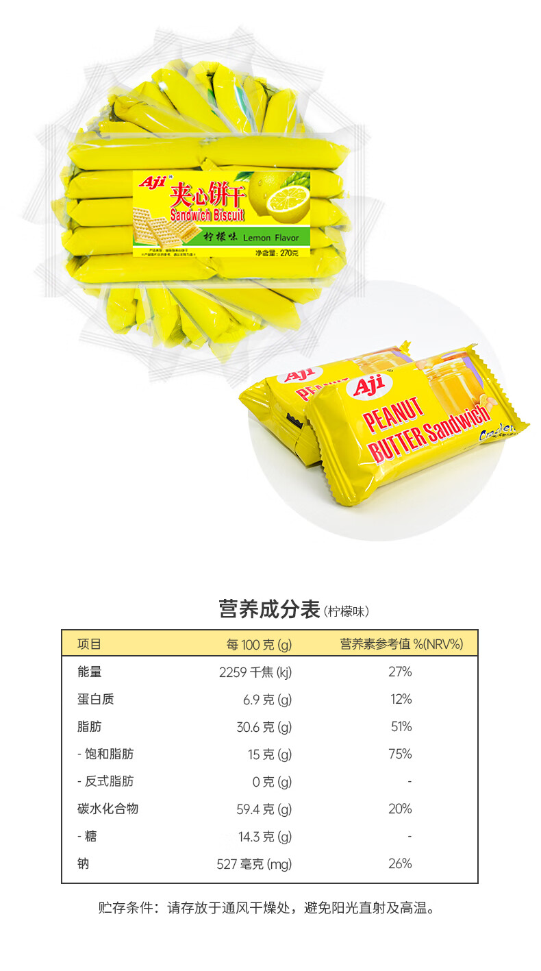 Aji夹心饼干柠檬味 270g*1袋 黄色