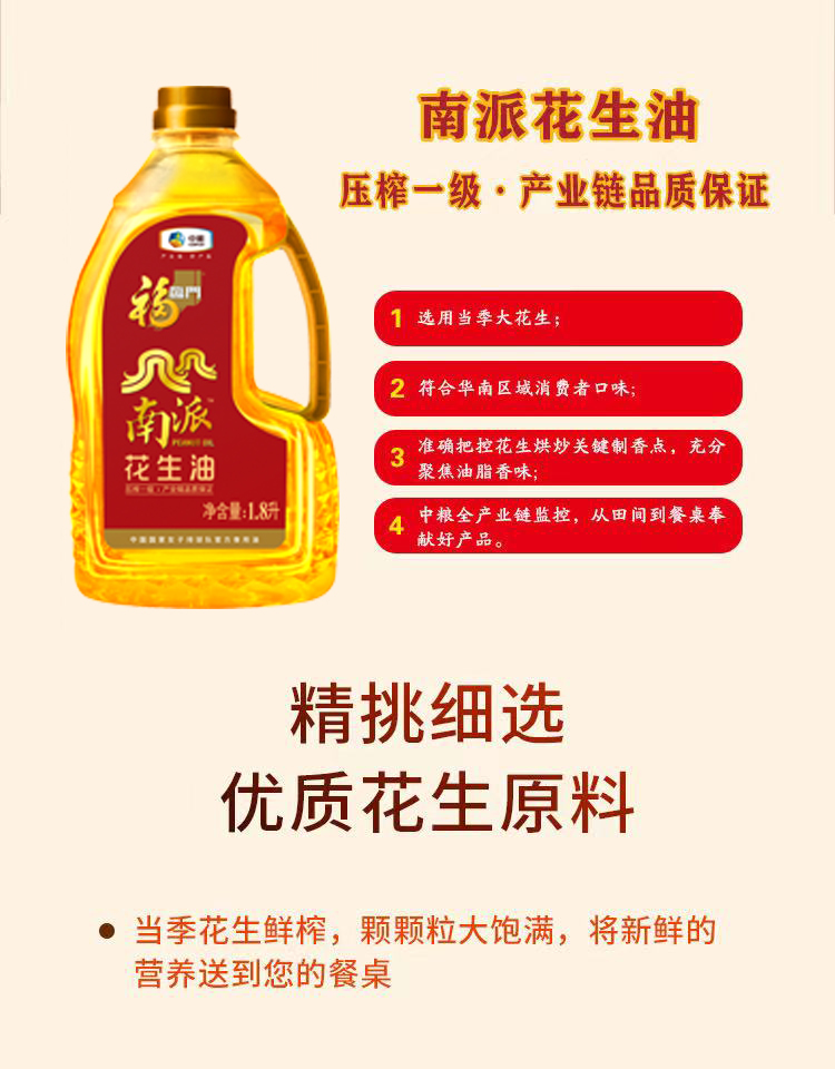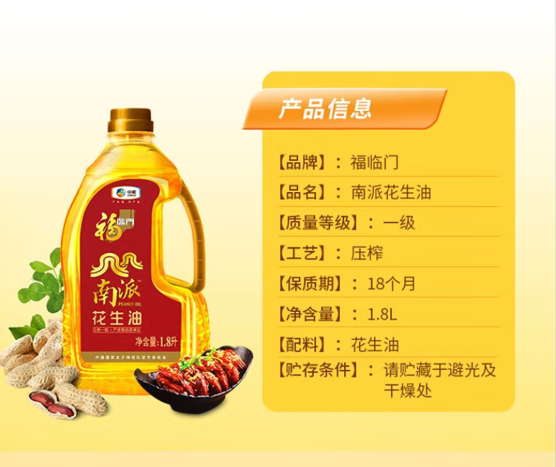 福临门南派花生油1.8升(压榨一级)单位:瓶 黄色