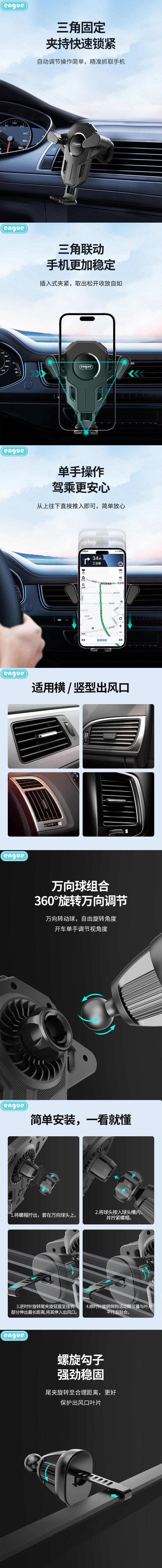 恩谷(ENGUE) EG-C03 支持4.0-6.5寸大屏手机 出风口车载手机支架 黑色(单位:个)