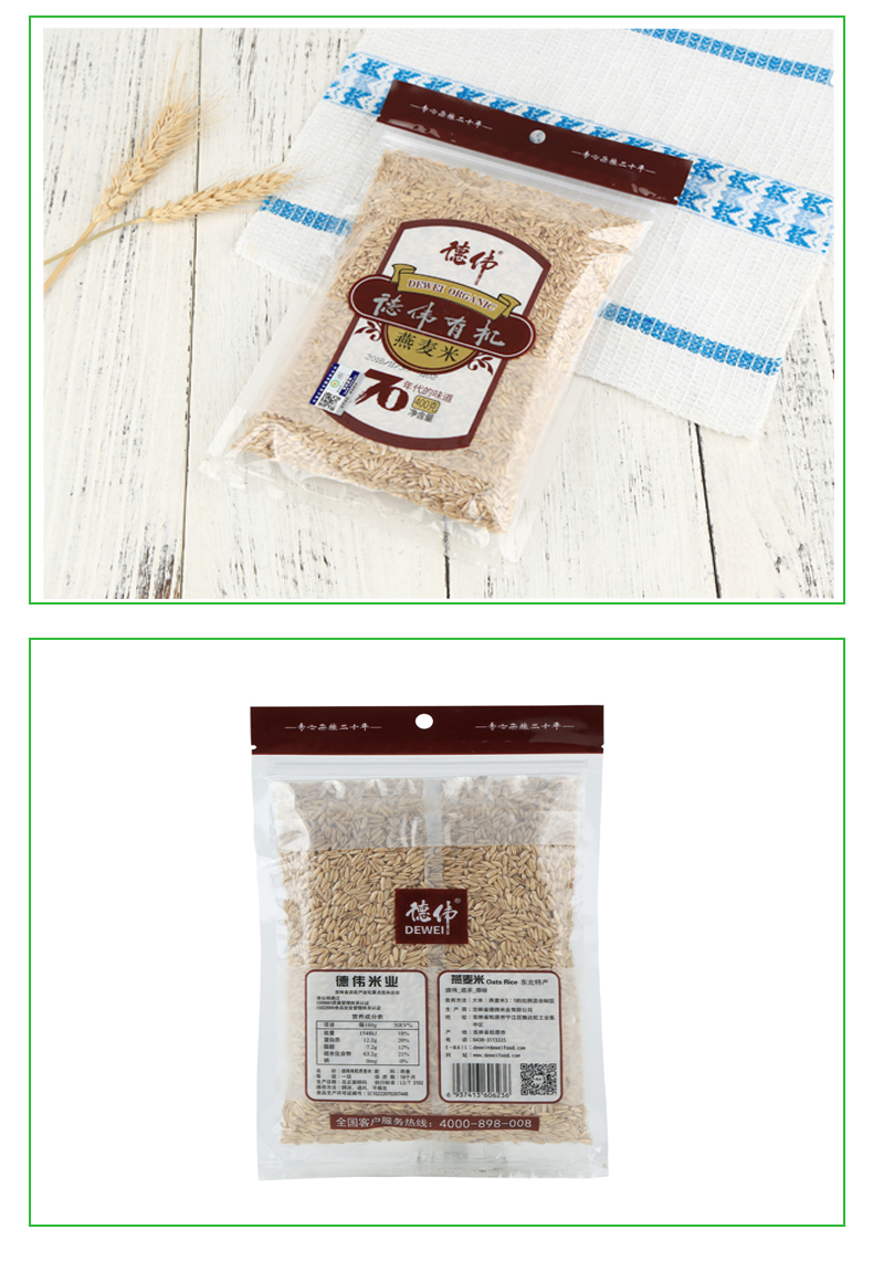 德伟(dewei)有机燕麦米400g*2袋(单位:组) 浅灰色