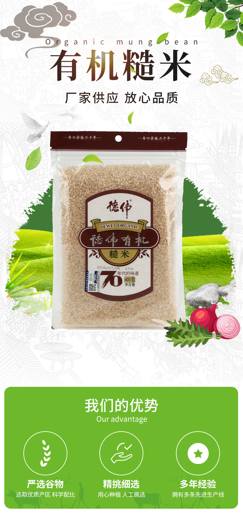 德伟(dewei)有机糙米400g(单位:袋) 象牙色
