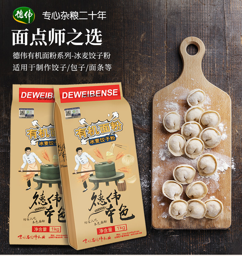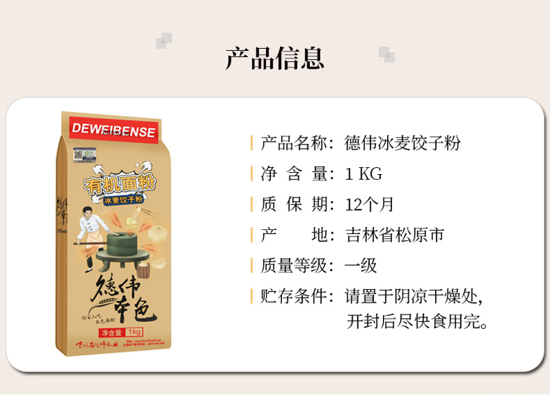 德伟(dewei)本色有机面粉(冰麦饺子粉)1KG(单位:袋) 奶茶杏