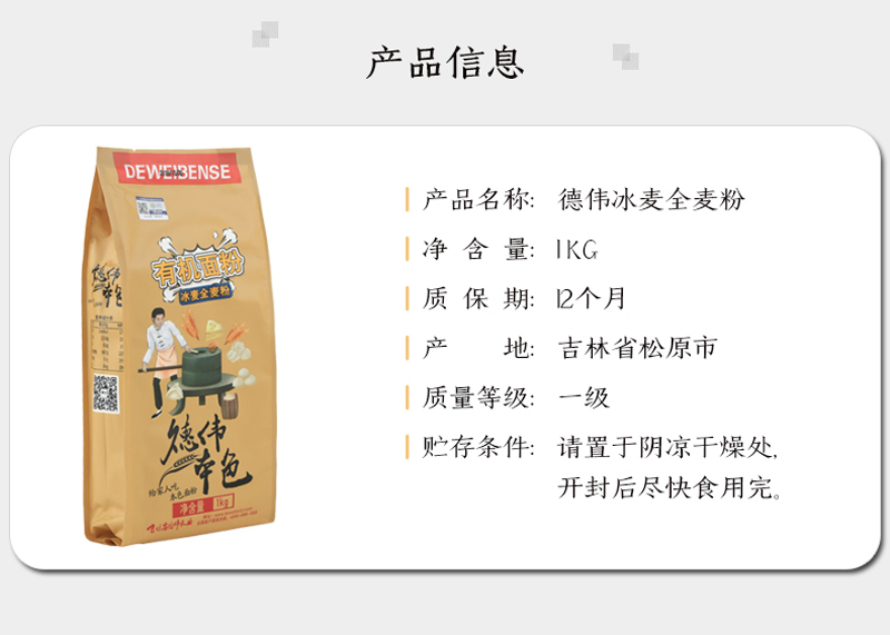 德伟(dewei)本色有机面粉(冰麦全麦粉)1KG(单位:袋) 奶茶杏