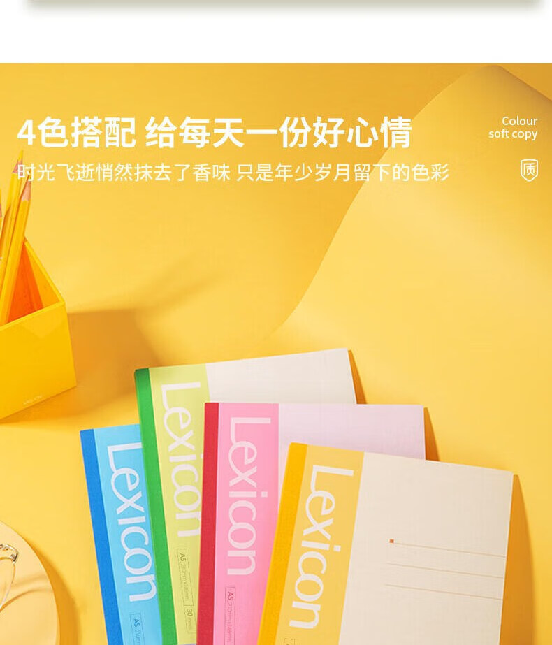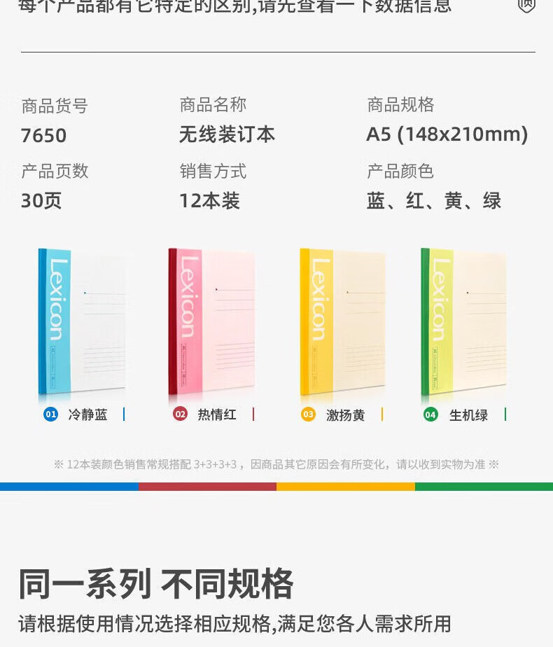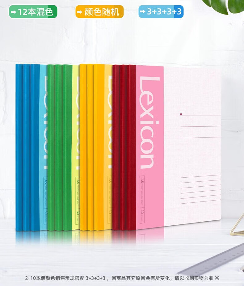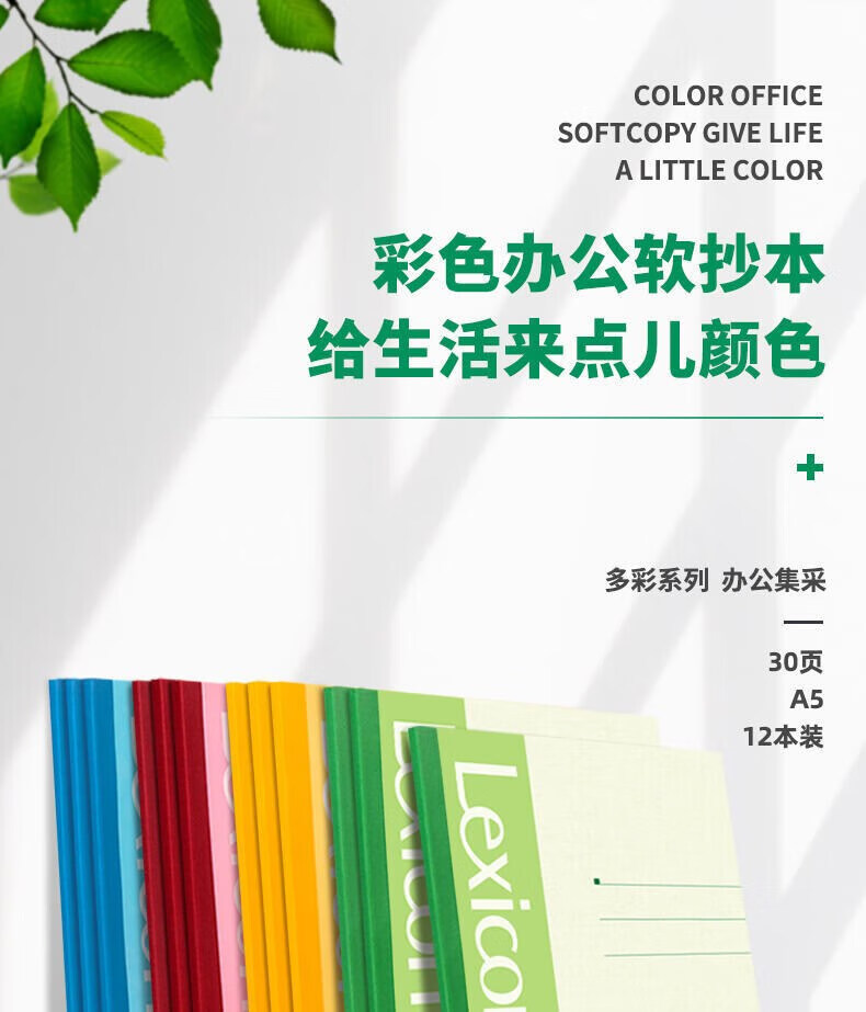 得力(deli)12本A5/30张无线装订软抄本彩色7650 记事本/ 工作笔记本子/ 日记本 混色