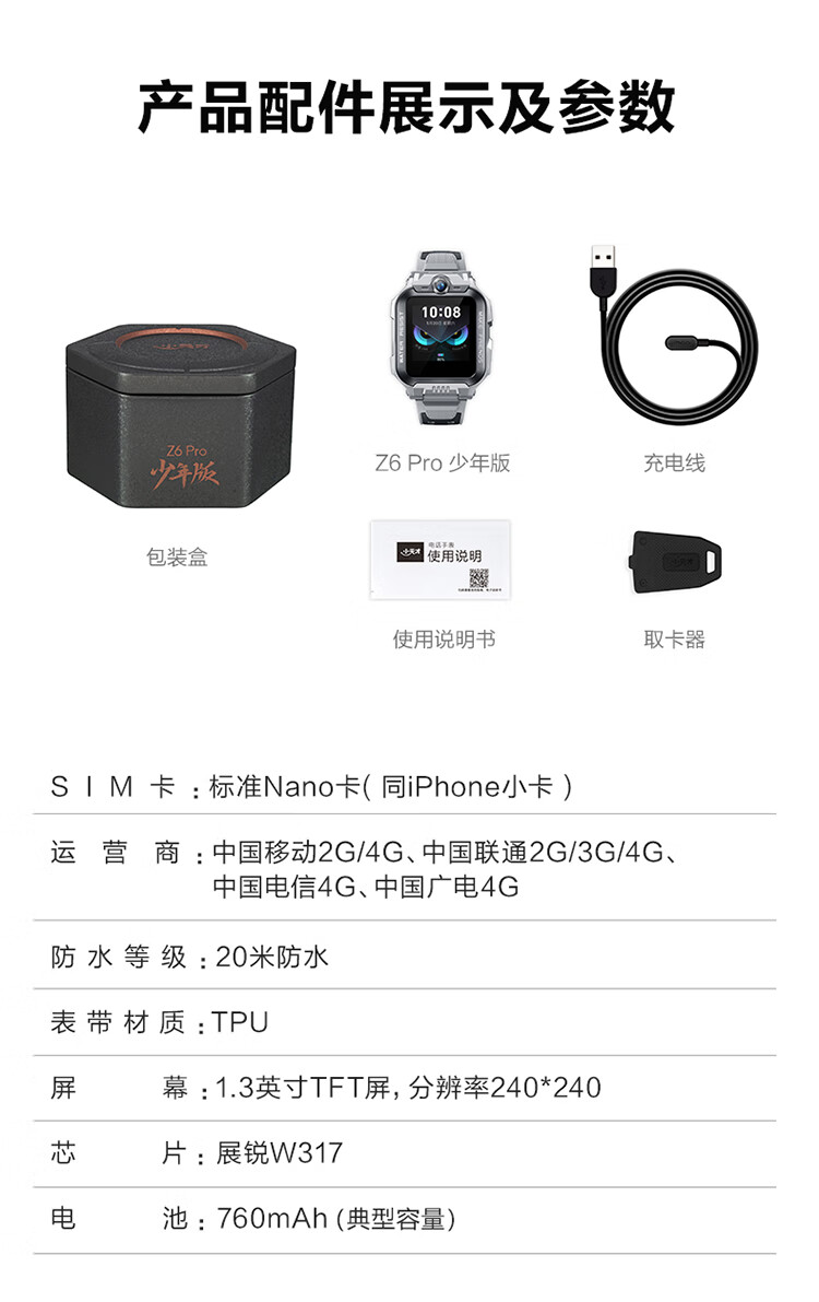 小天才 儿童电话手表 Z6P少年版 1.3英寸 茶金白(单位:个)