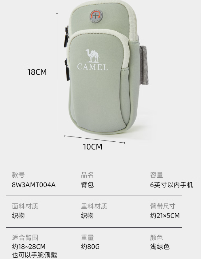 骆驼(CAMEL) 户外男女款运动手臂包 8W3AMT004A 80g 黑色(单位:个)
