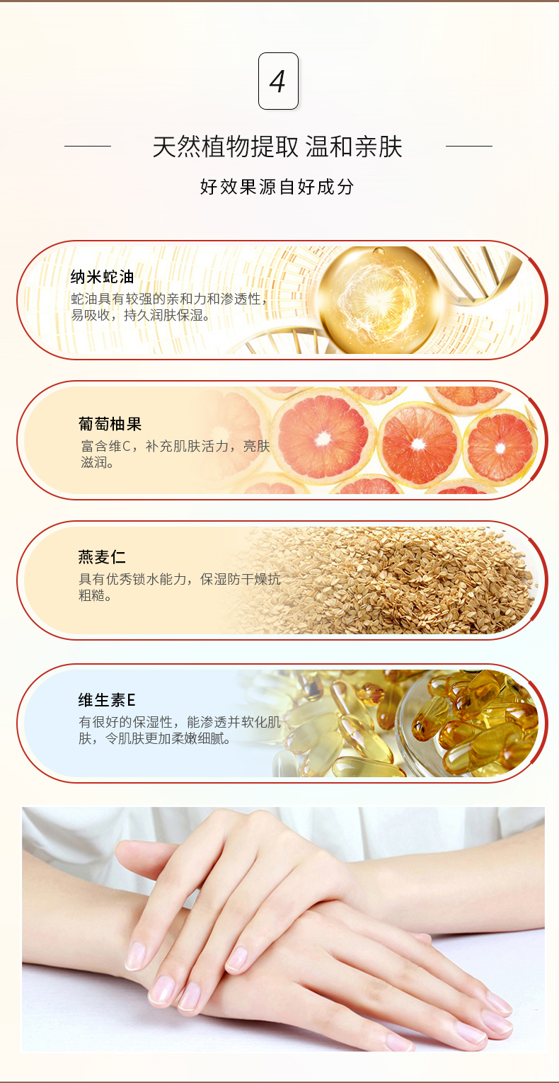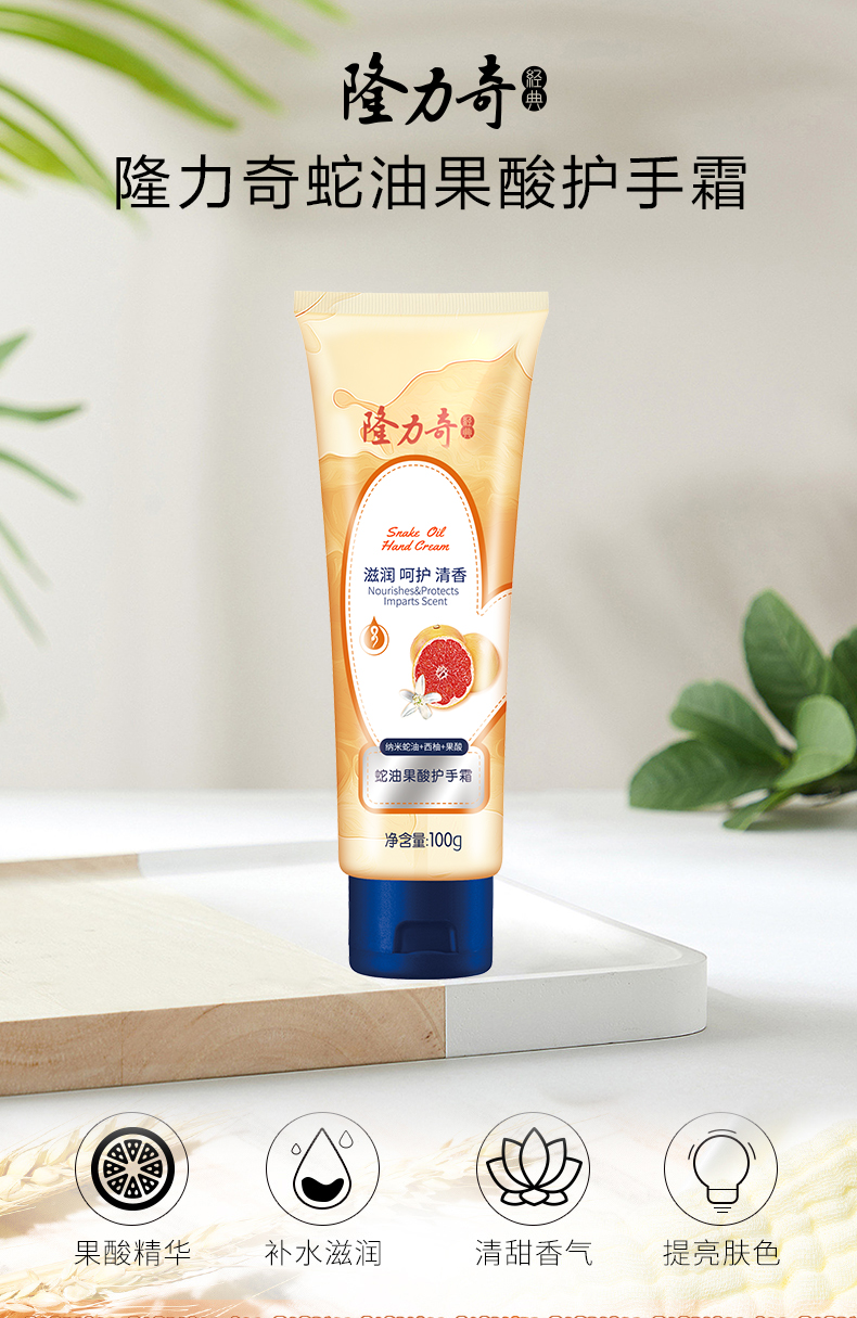 隆力奇 LLQ-202502016 蛇油果酸护手霜100g*4支 锁住水分 呵护肌肤 香槟黄(单位:套)