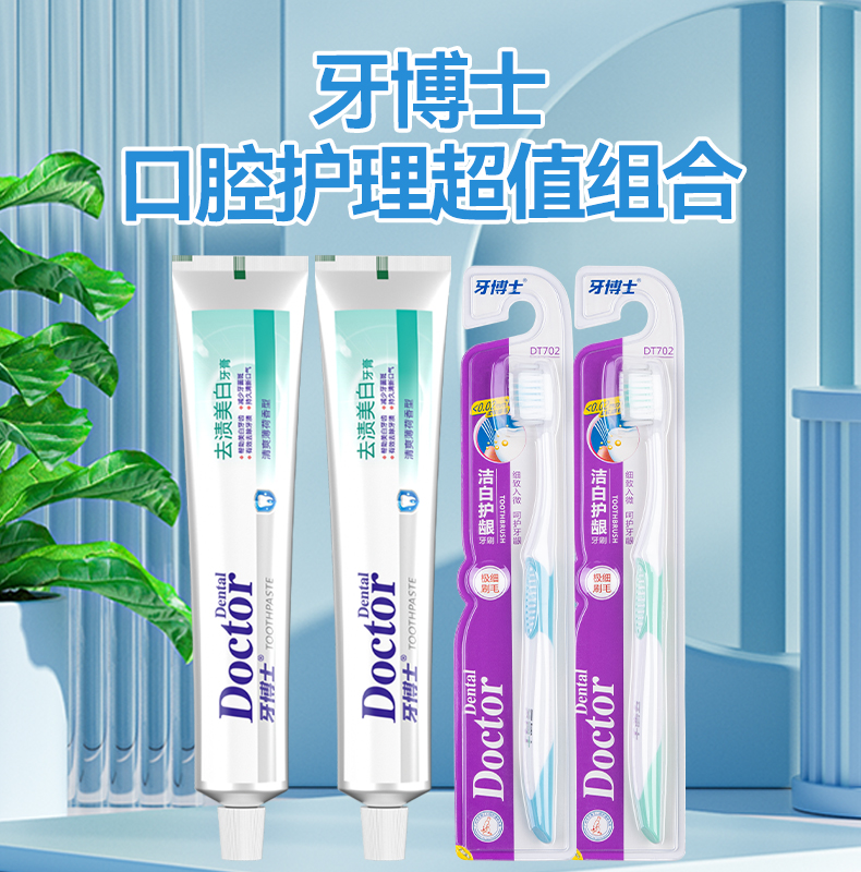 牙博士 牙膏 去渍美白 180g*2牙刷*2 混色(单位:组)