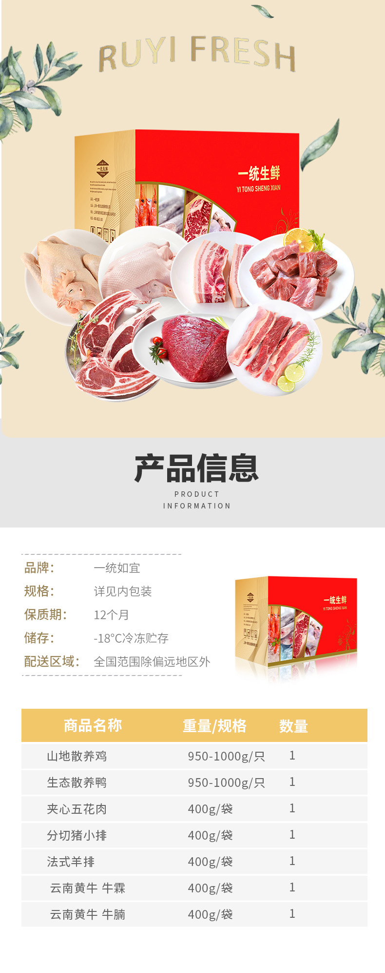 一统如宜 家禽,猪牛羊肉等 生鲜礼盒588 3900g 红色(单位:盒)