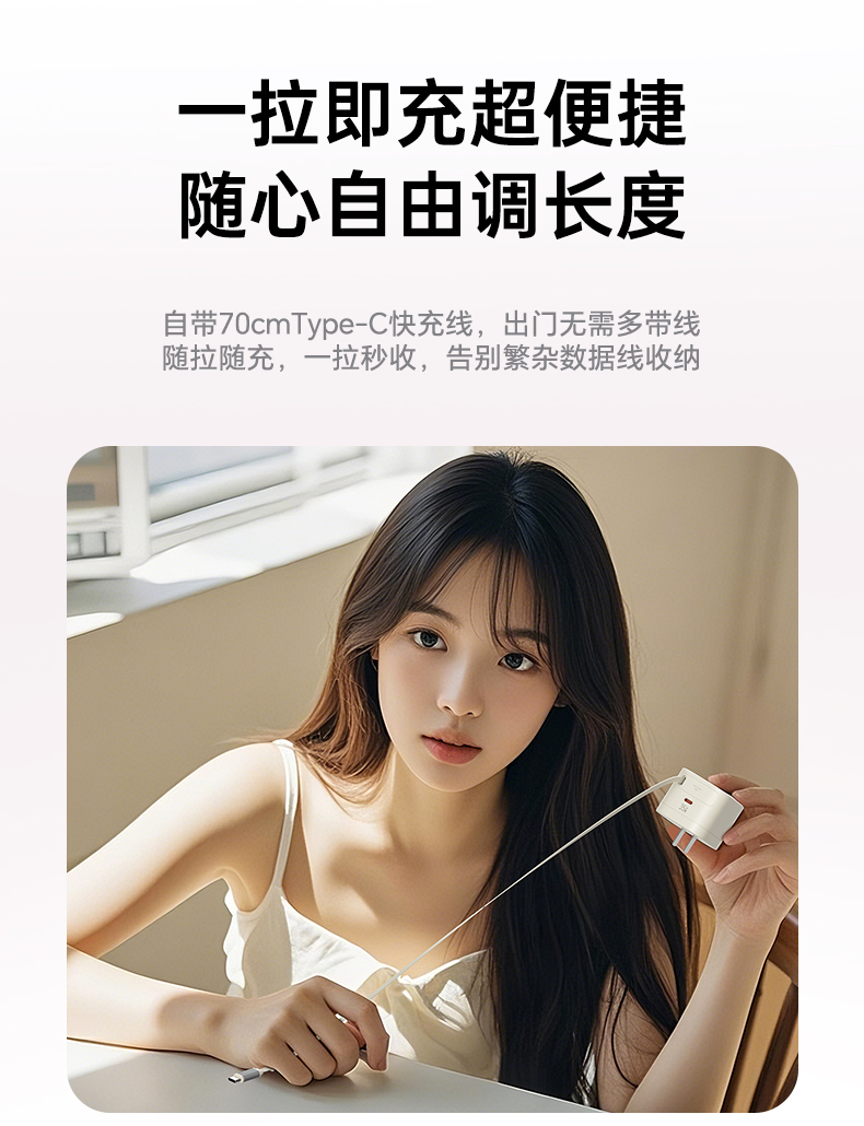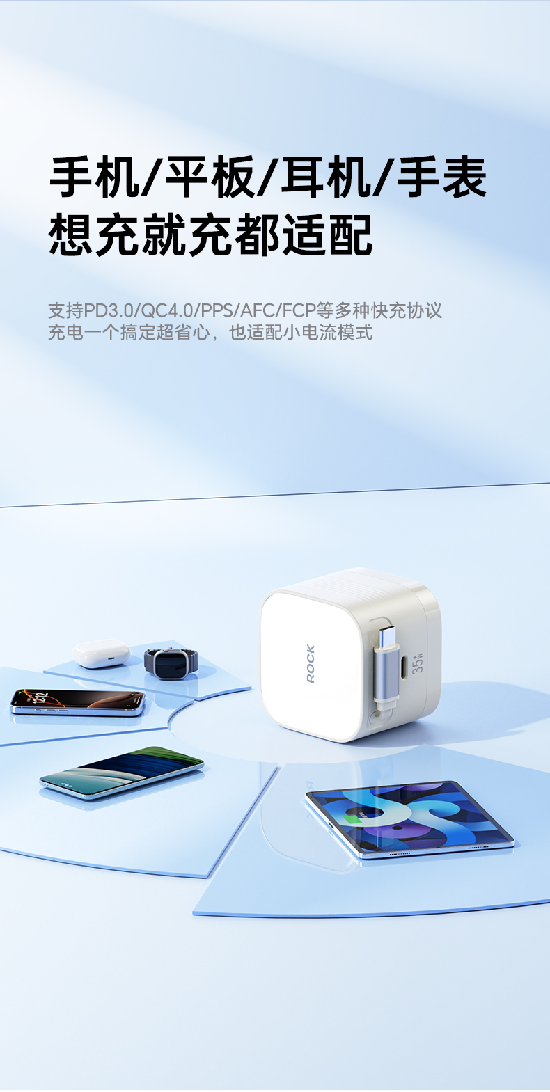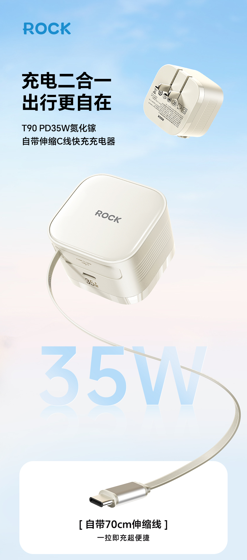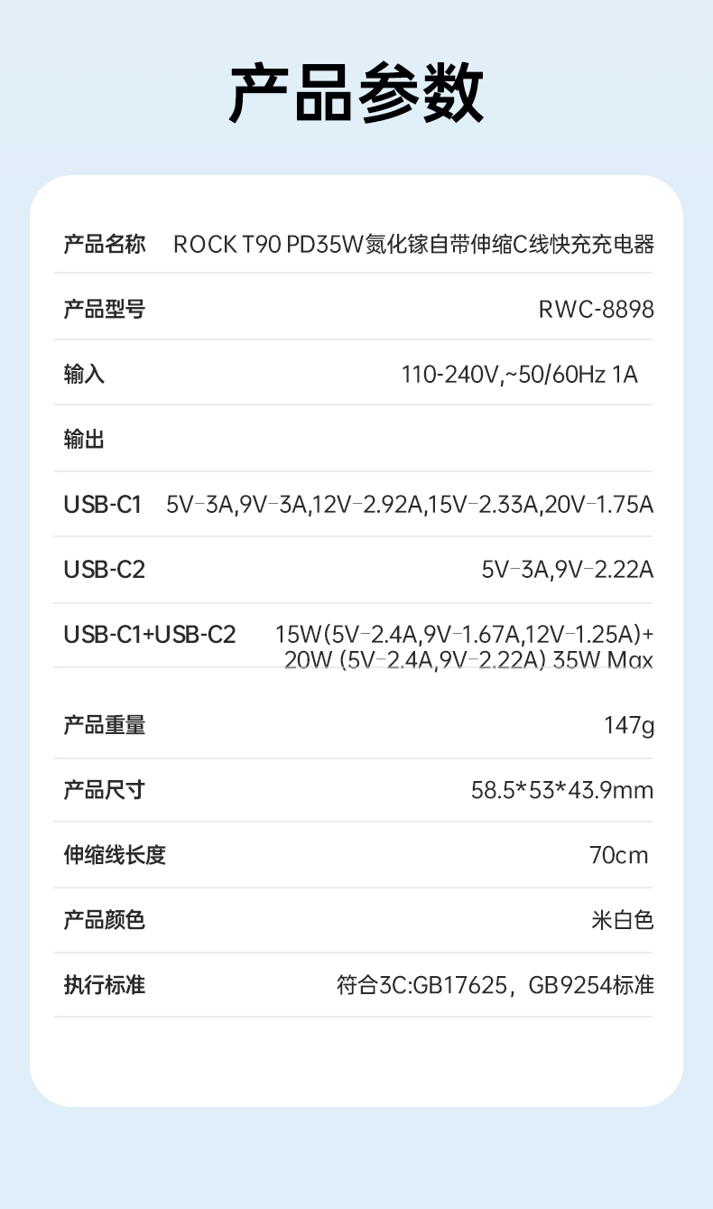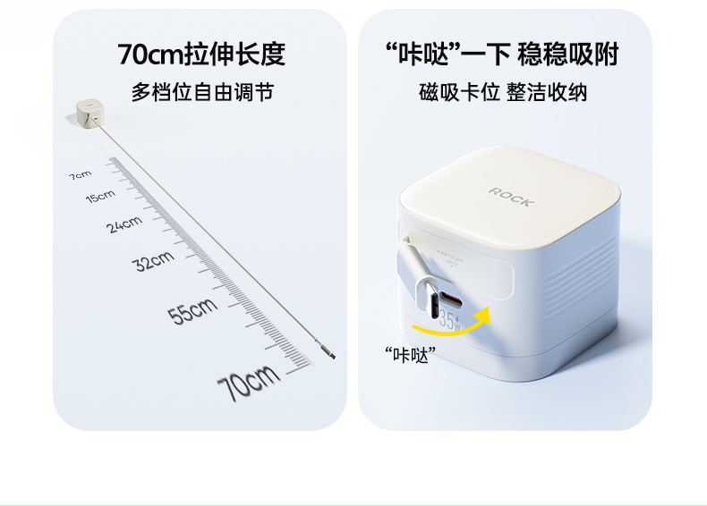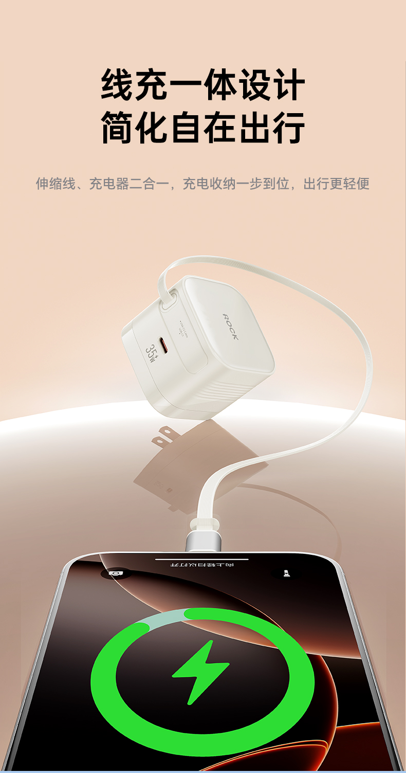 ROCK 氮化镓自带伸缩 RWC-8898 35W 70cm伸缩线 米白色(单位:个)