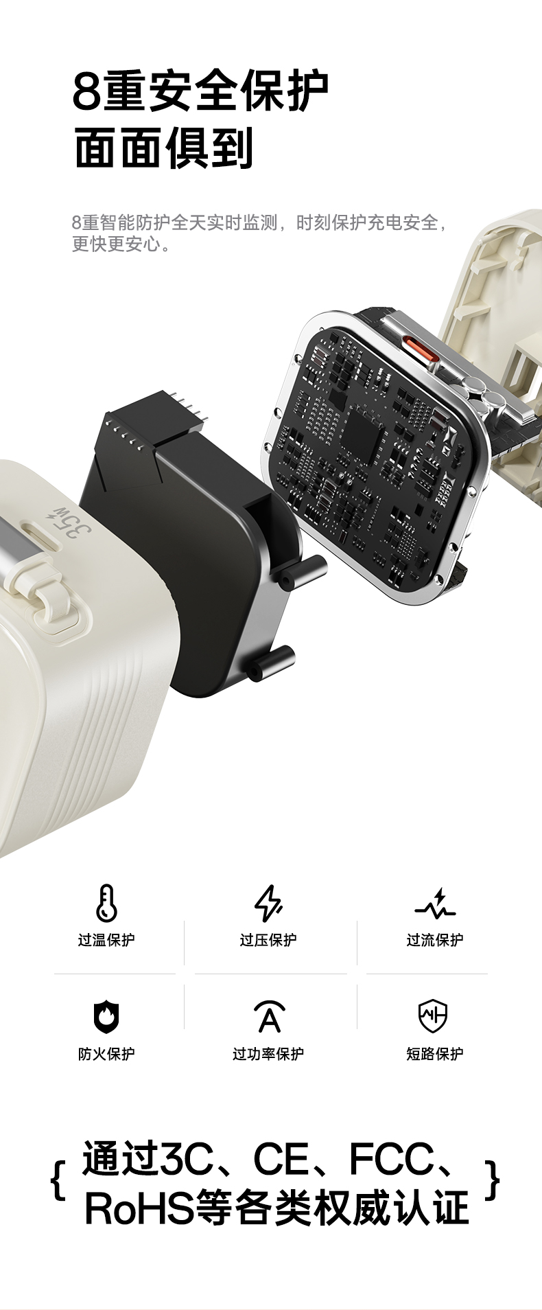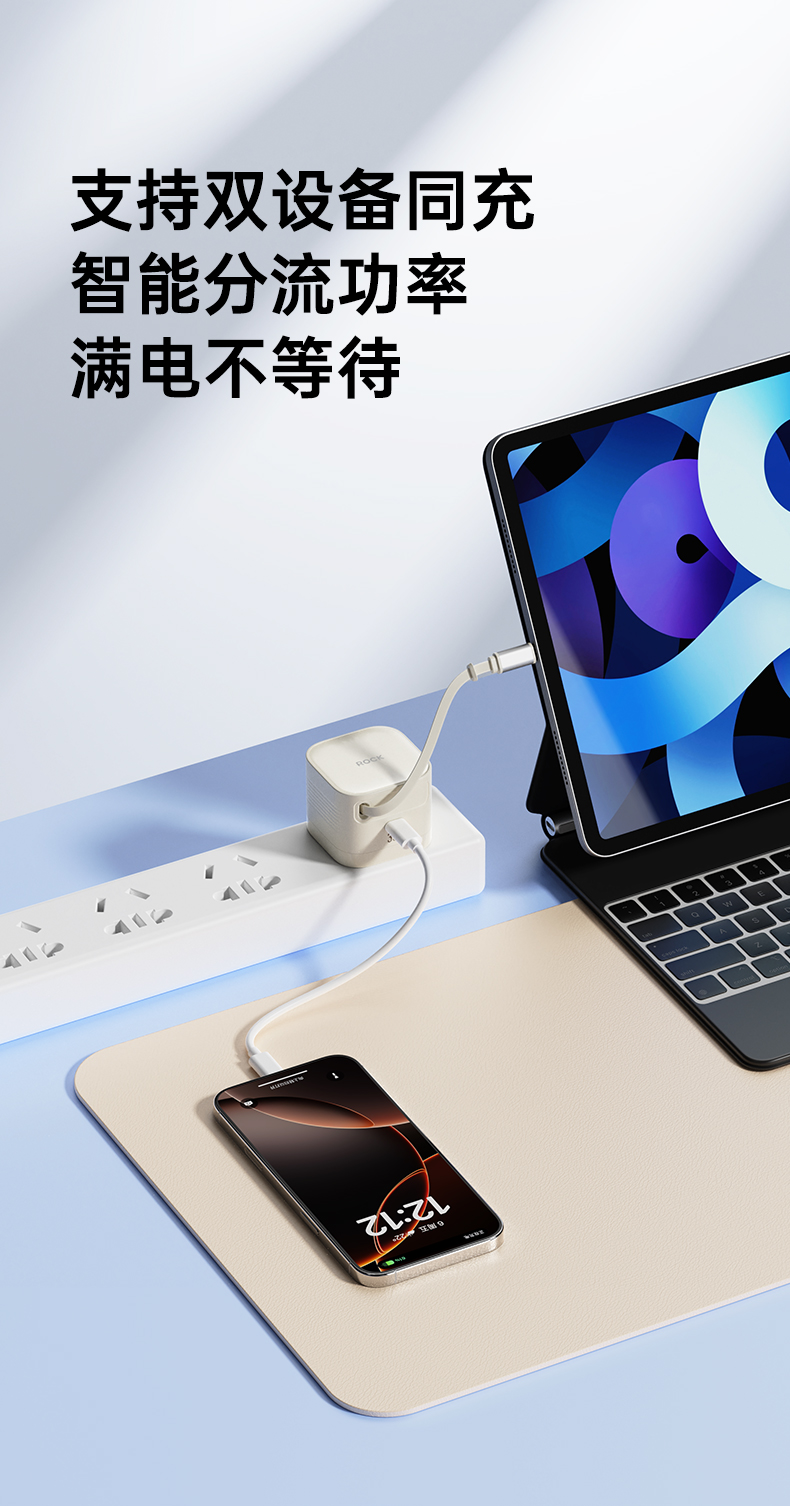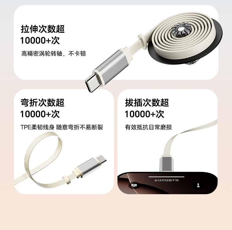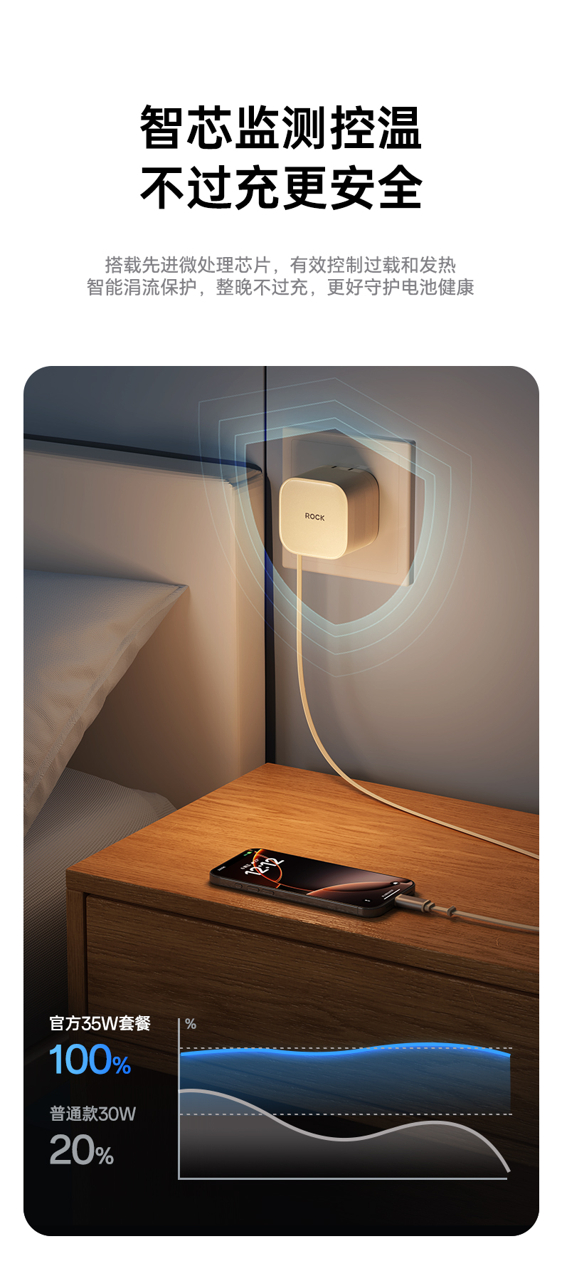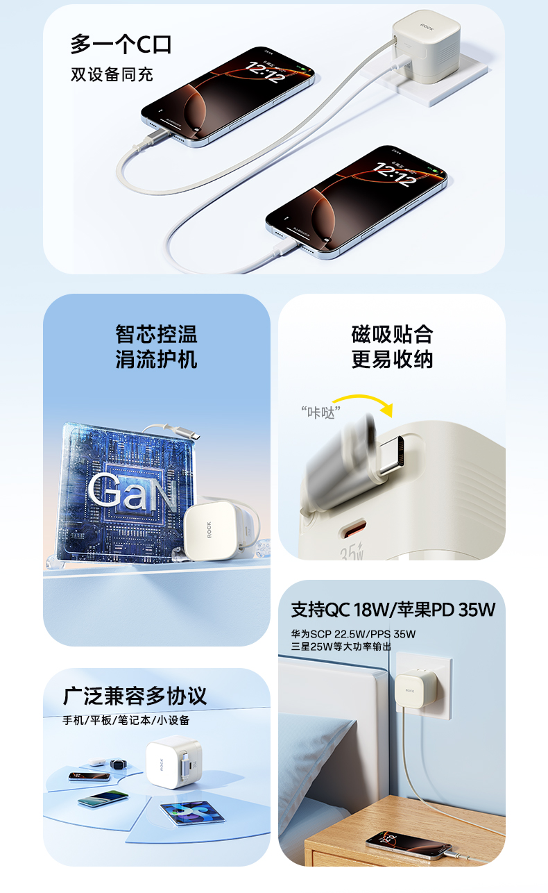 ROCK 氮化镓自带伸缩 RWC-8898 35W 70cm伸缩线 米白色(单位:个)