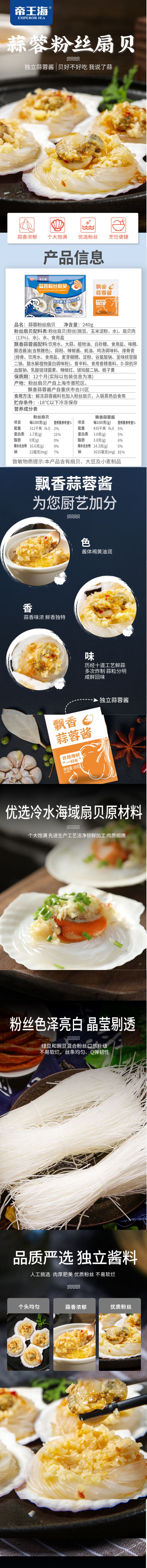沪澄优选 蒜蓉粉丝扇贝(6只)三袋组合装 240G/袋*3袋 个大饱满 肉质细嫩 蓝色(单位:组)