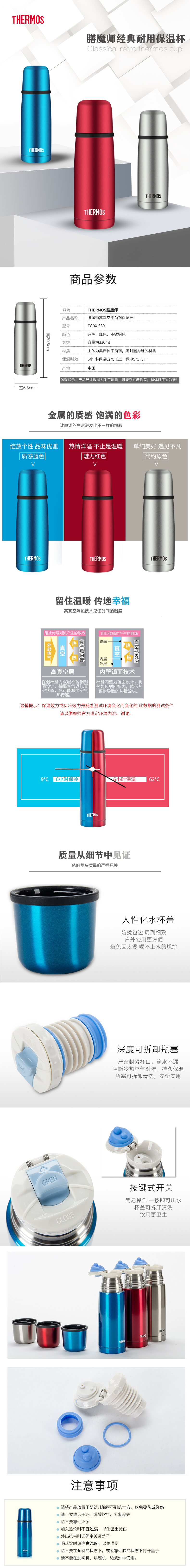 膳魔师(THERMOS) 真空不锈钢保温杯 TCDX-330 330ml 宝石蓝(单位:个)