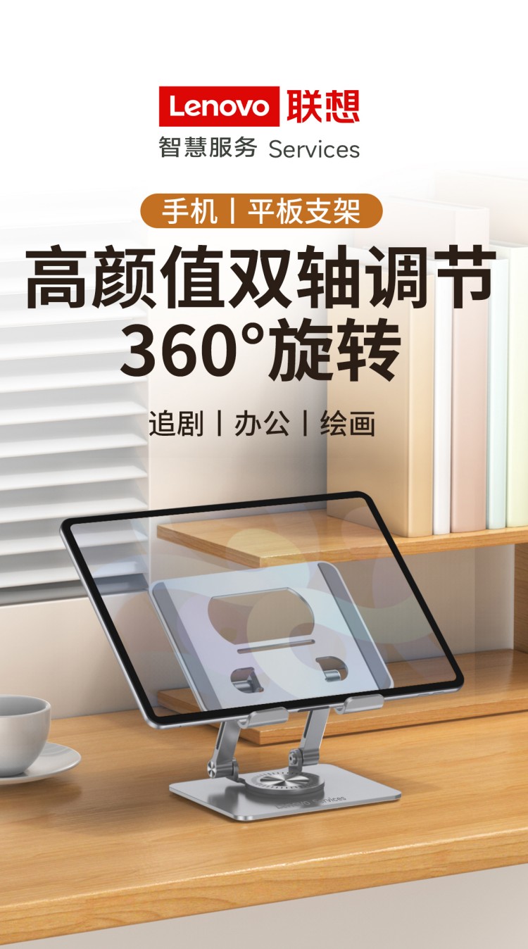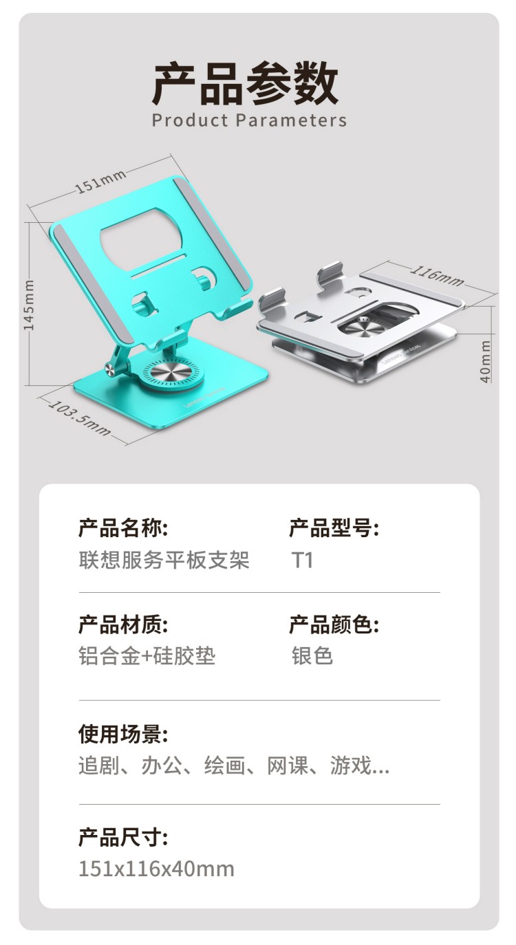 联想(Lenovo) 平板电脑支架 T1 360°旋转支架 银色(单位:件)
