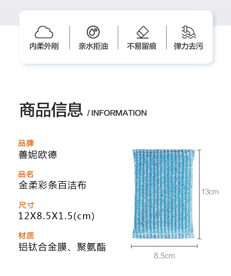 善妮欧德 金柔百洁布 洗碗块 S1121 8.5*13cm5块/包 蓝色(单位:包)