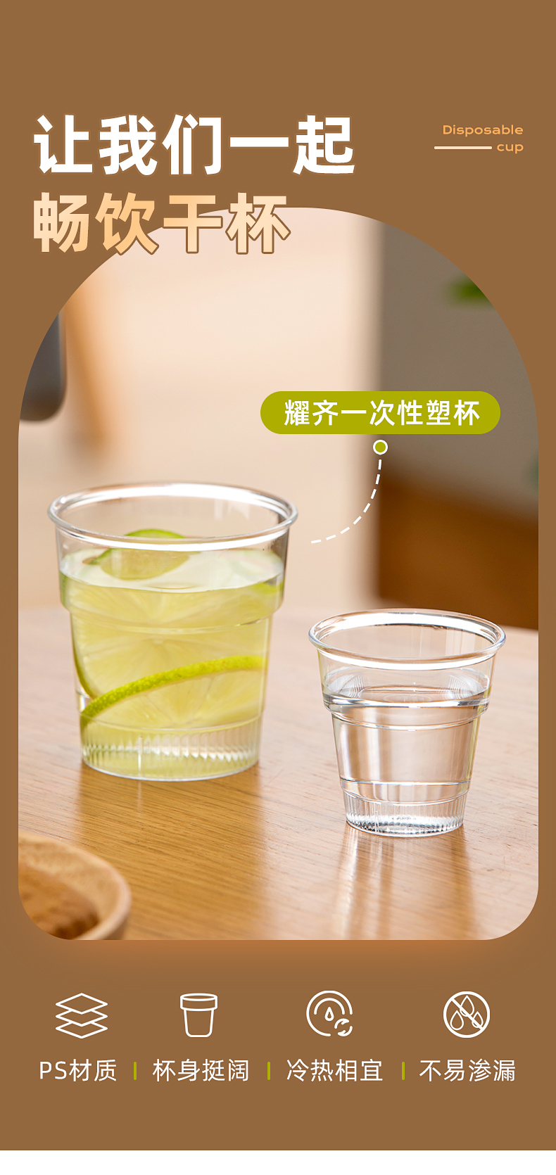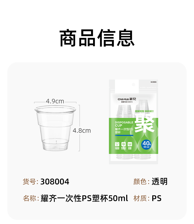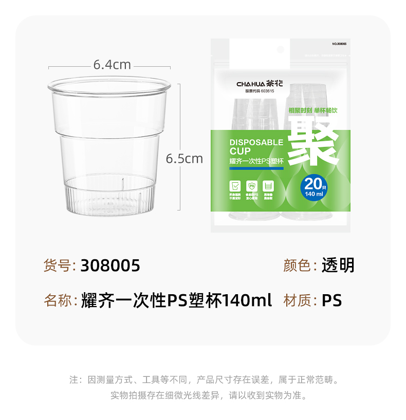 茶花(CHAHUA) 一次性PS塑杯 308005 1包20只 透明【大号140ml】(单位:包)