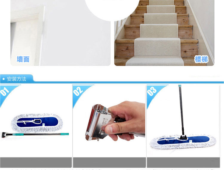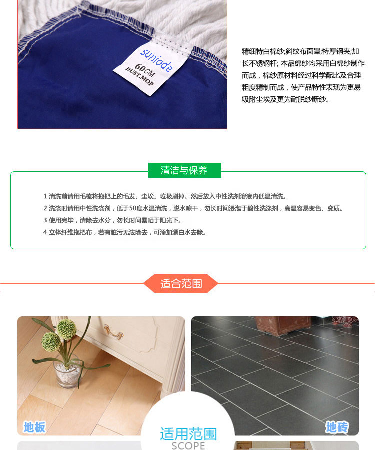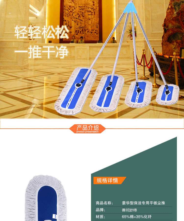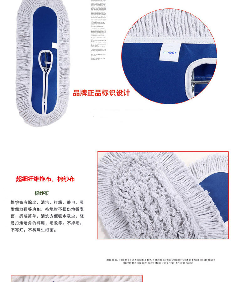 善妮欧德 尘推平板拖把 大号棉线墩布 S424 60CM 蓝色(单位:套)