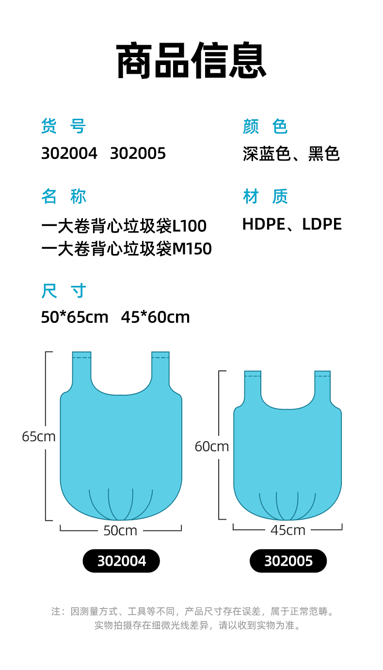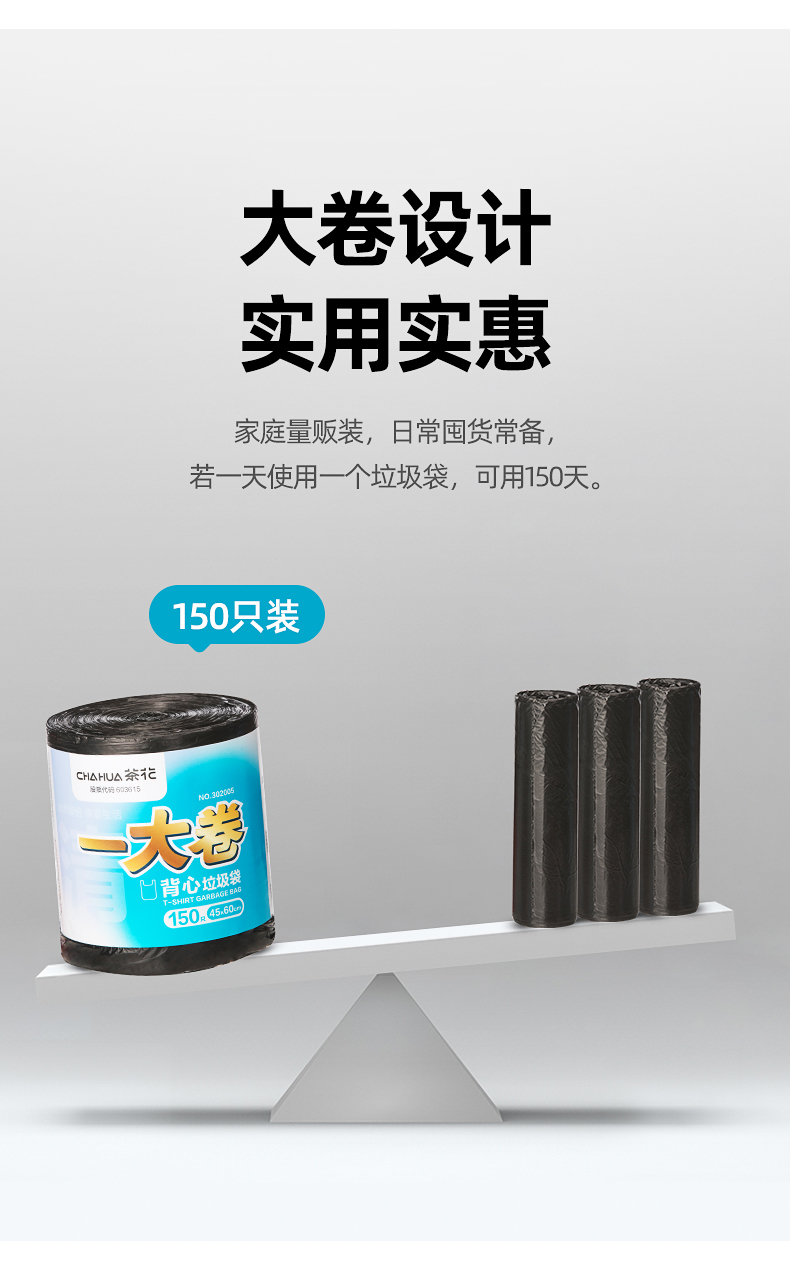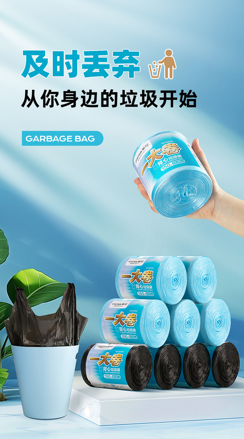 茶花(CHAHUA) 一大卷背心垃圾袋 302004 一卷100只 混色【50*65cm】(单位:卷)