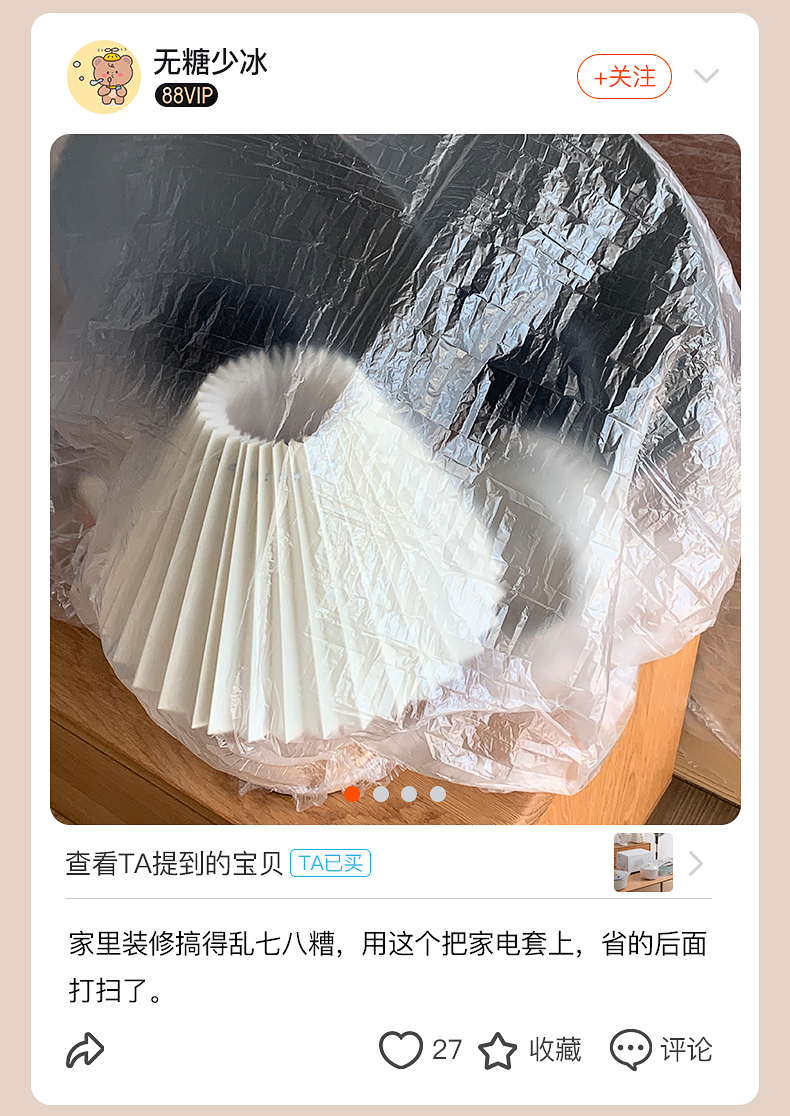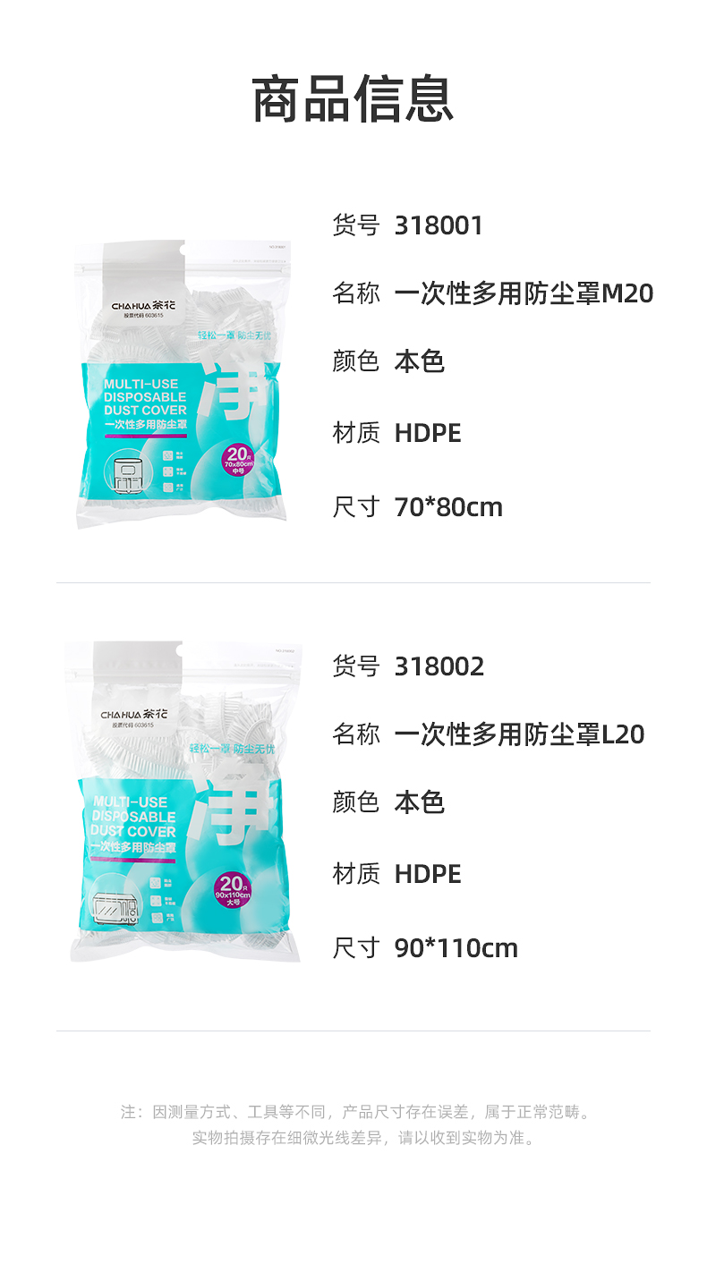 茶花(CHAHUA) 一次性多用防尘罩 318001 1包20只 本色【中号 70x80cm】(单位:包)