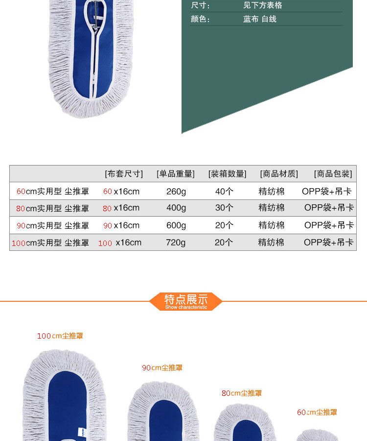 善妮欧德 尘推平板拖把大号墩布棉线 S432 90cm 蓝色(单位:套)