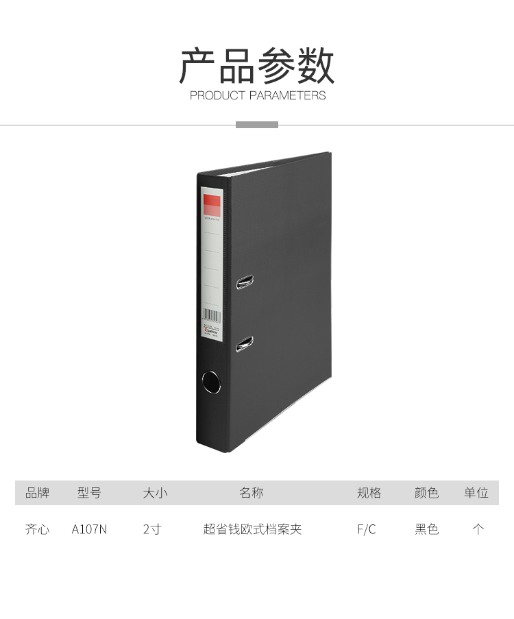 齐心(COMIX) 2寸欧式档案夹 A107N F/C 黑色(单位:个)