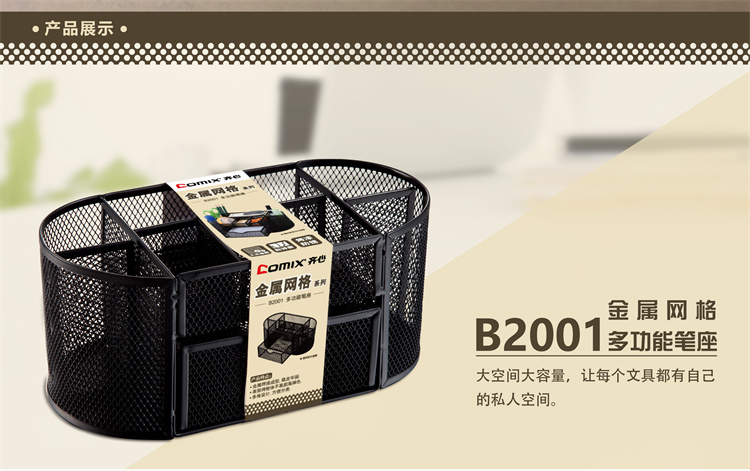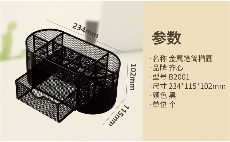 齐心(COMIX) 金属笔筒 B2001 234*115*102mm 黑色(单位:个)