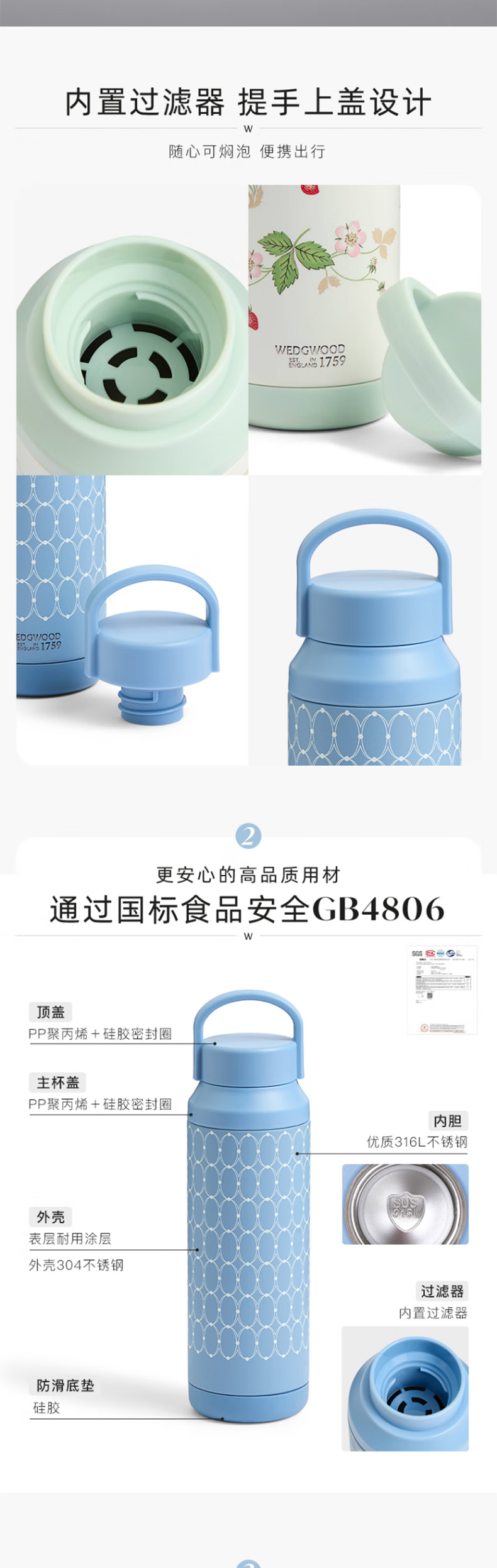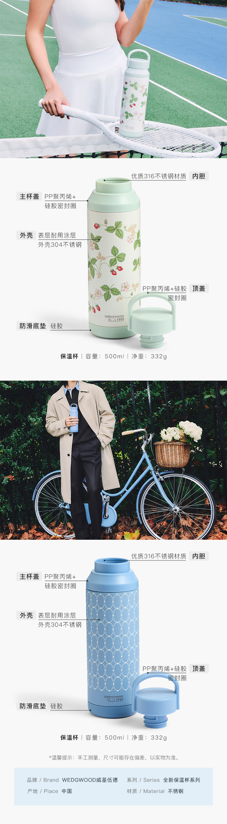 WEDGWOOD 金粉年华运动保温杯 1078323 500毫升 宝石蓝(单位:个)