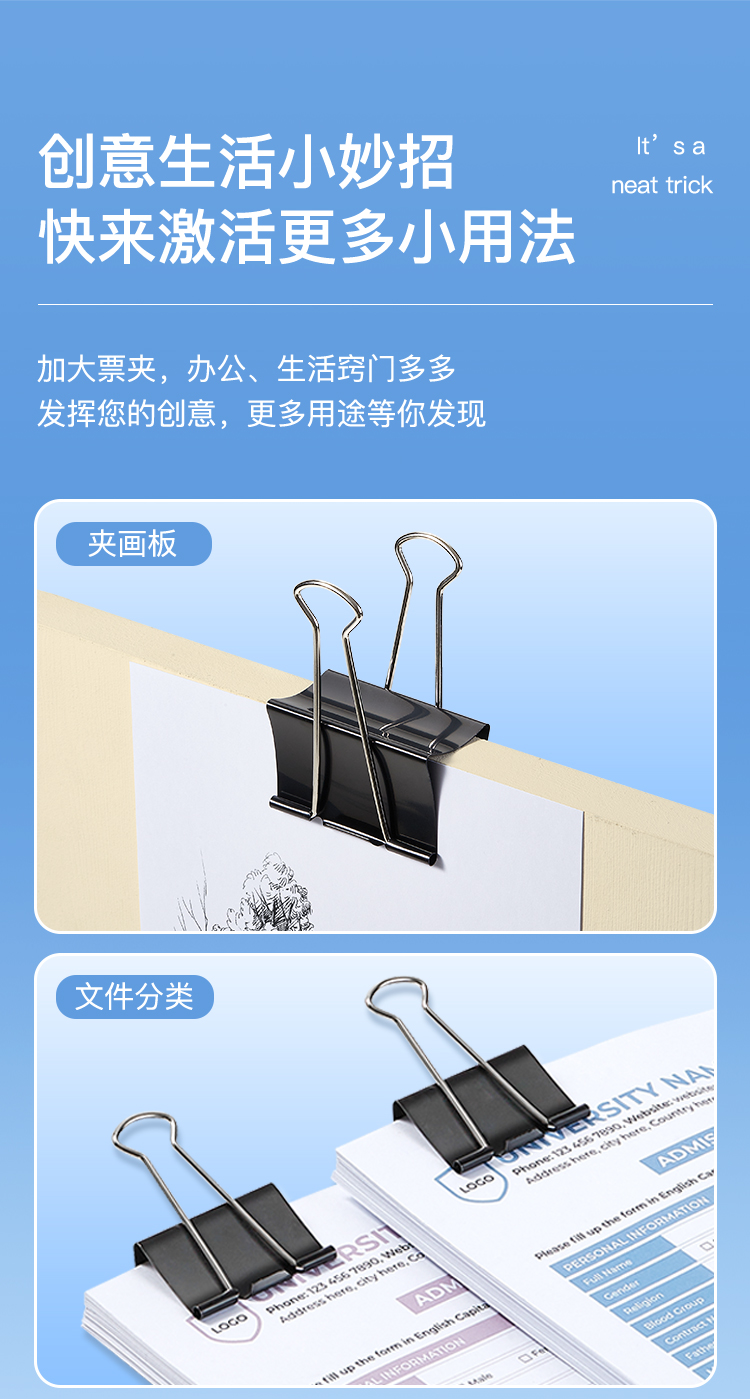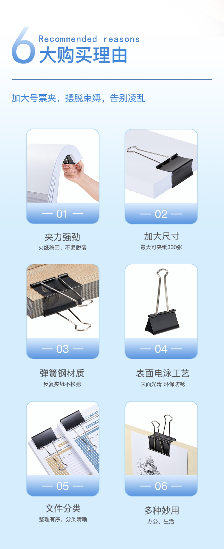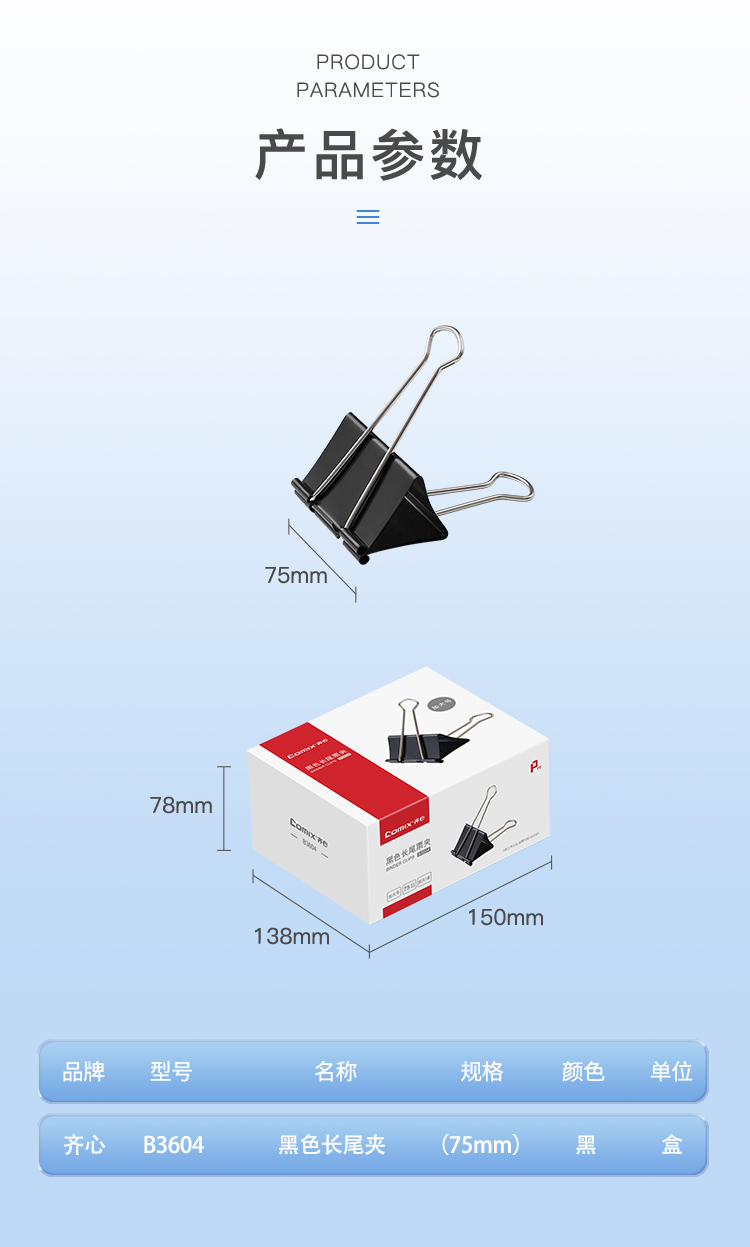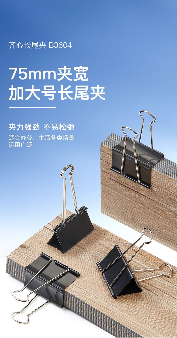 齐心(COMIX) 长尾夹 B3604 75mm 黑色(单位:盒)