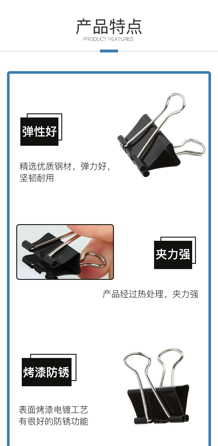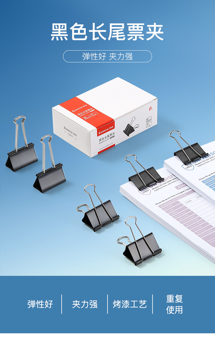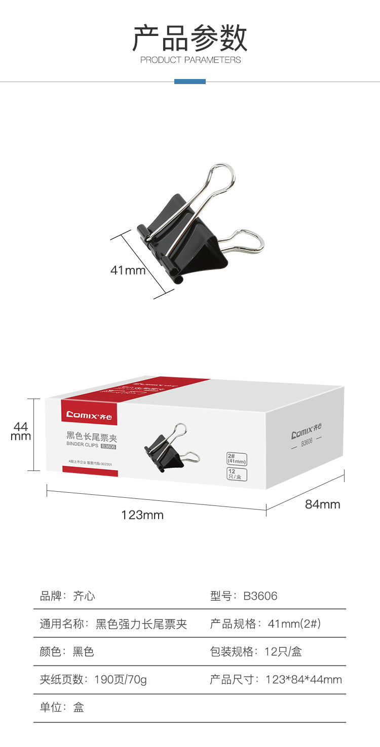 齐心(COMIX) 长尾夹 B3606 41mm12只/盒 黑色(单位:盒)