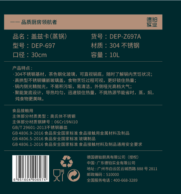 德铂(Debo)盖兹卡蒸锅 30cm DEP-697(单位:个) 不锈钢色