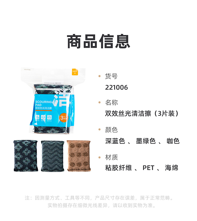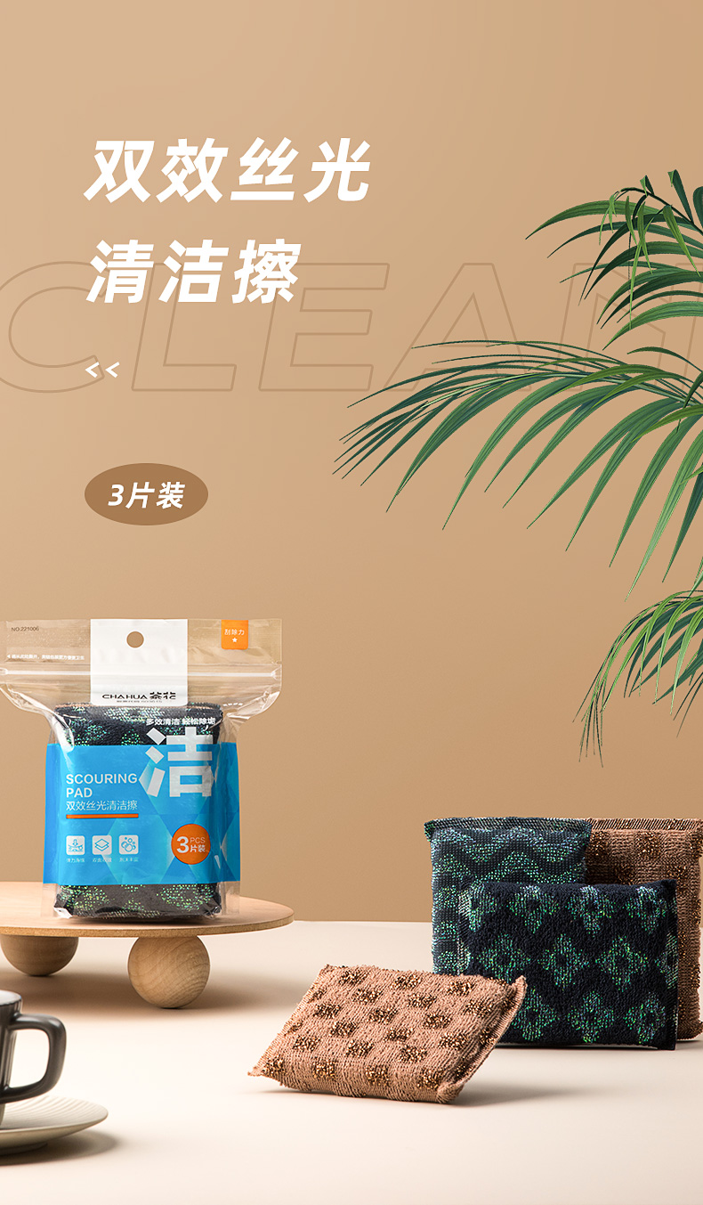 茶花(CHAHUA) 双效丝光清洁擦 221006 1包3片装 混色(单位:包)