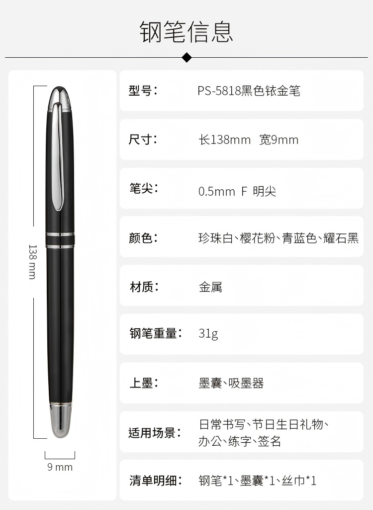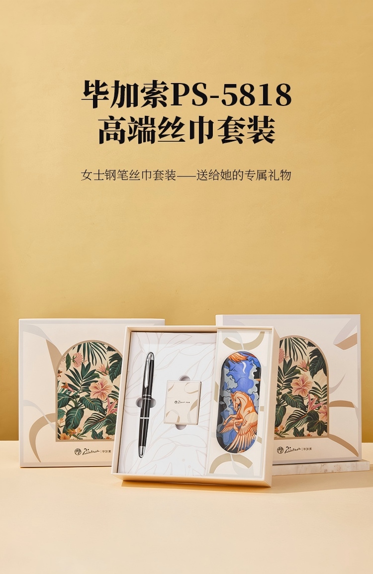 毕加索(pimio) 钢笔高端丝巾套装 PS-5818 钢笔+墨囊+丝巾 耀石黑(单位:套)