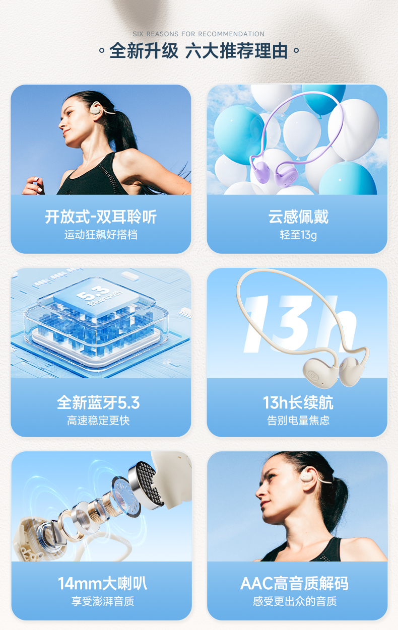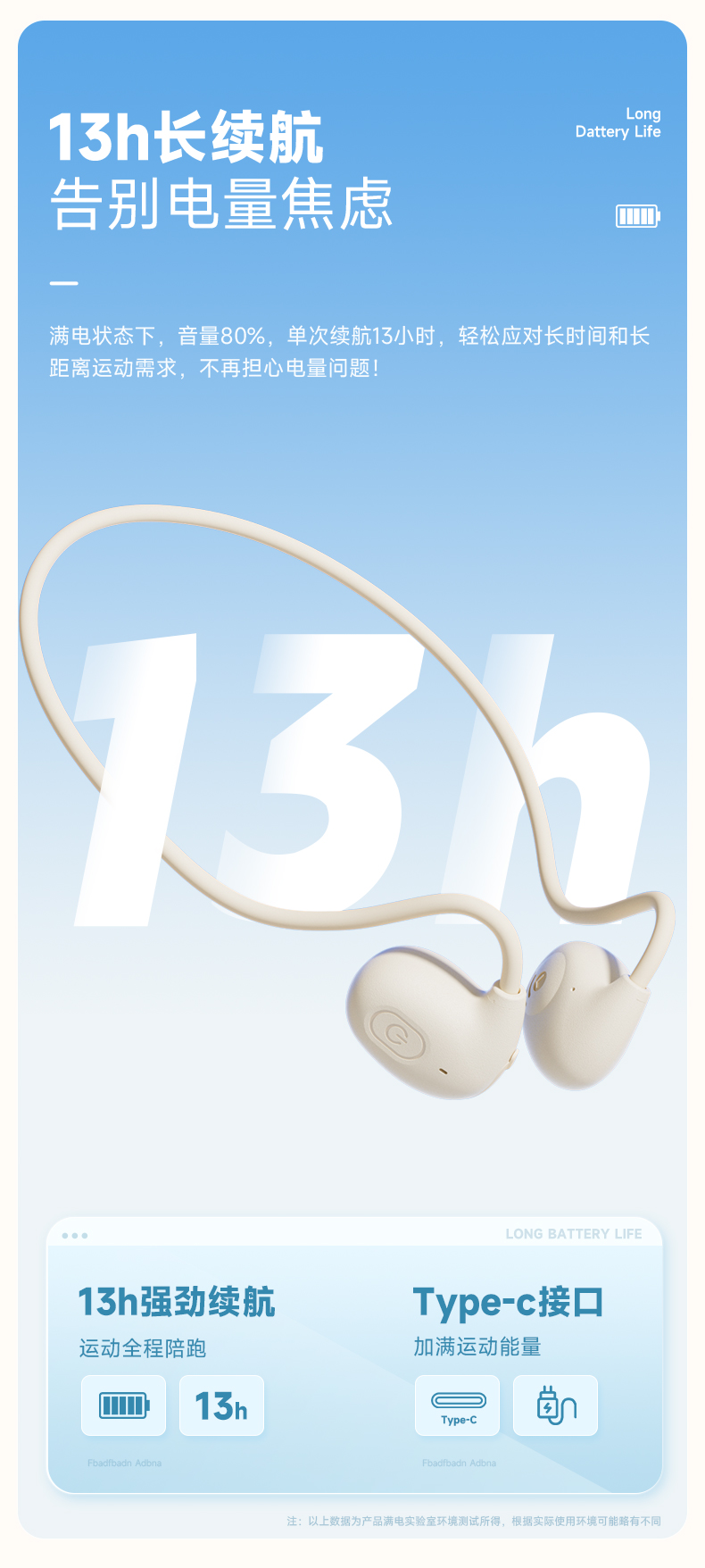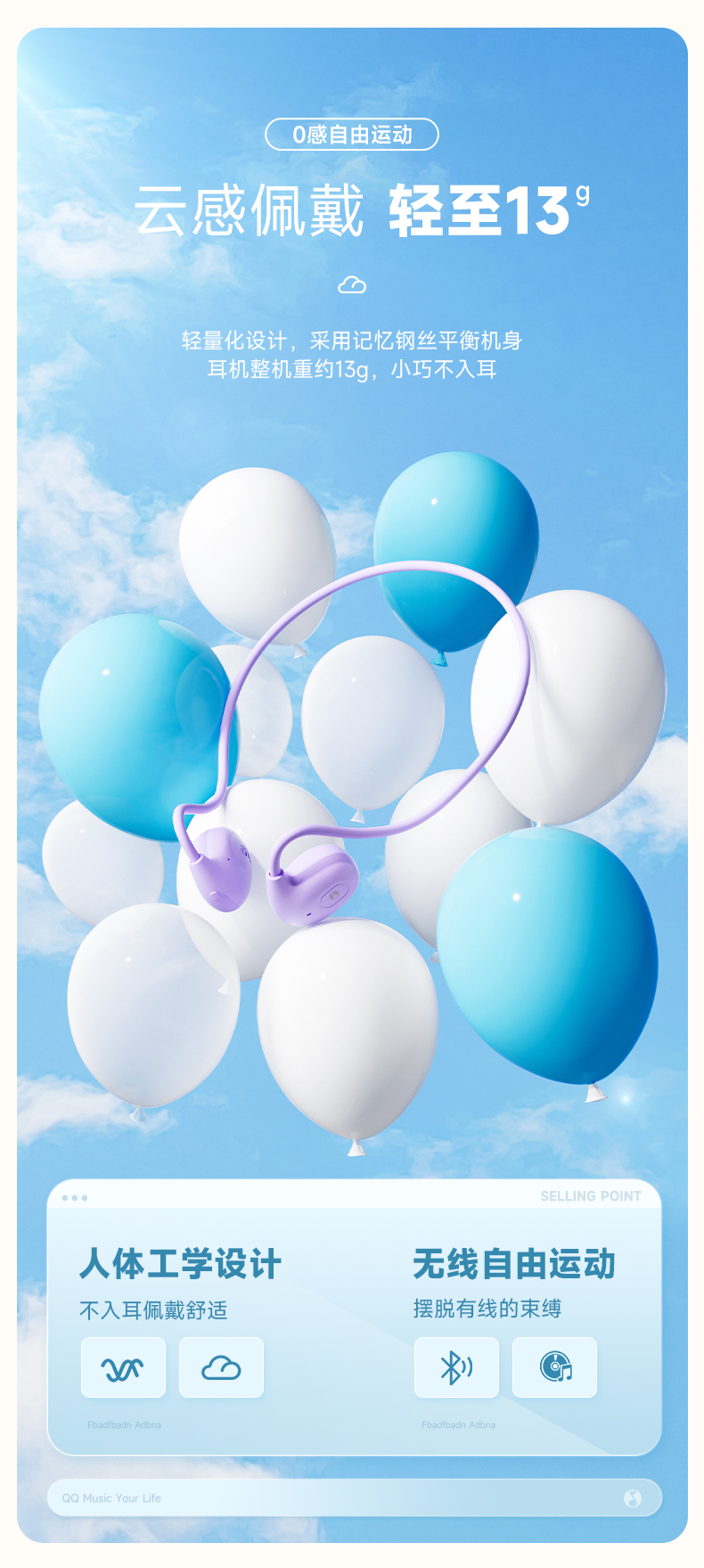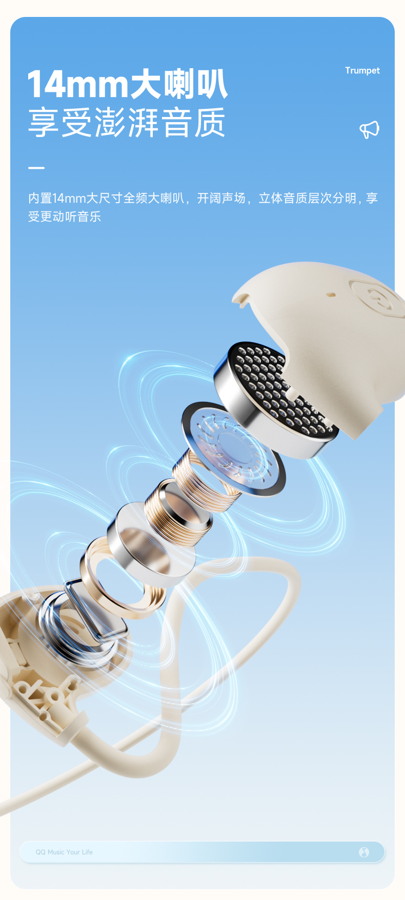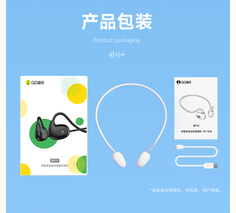 QQ音乐 开放式运动无线蓝牙耳机 EF11 80mAh 白色(单位:个)