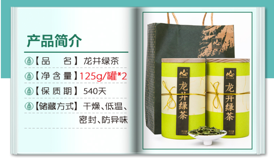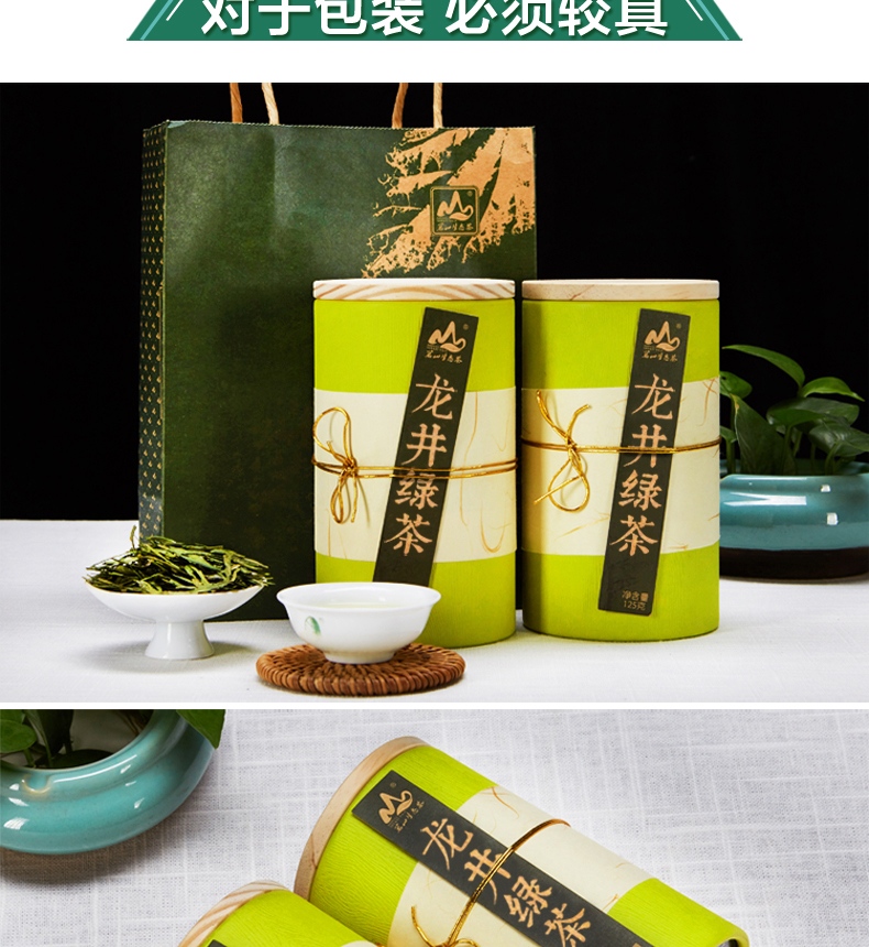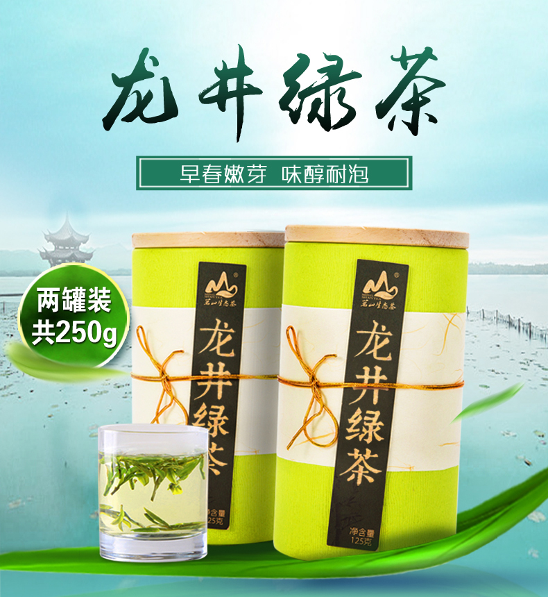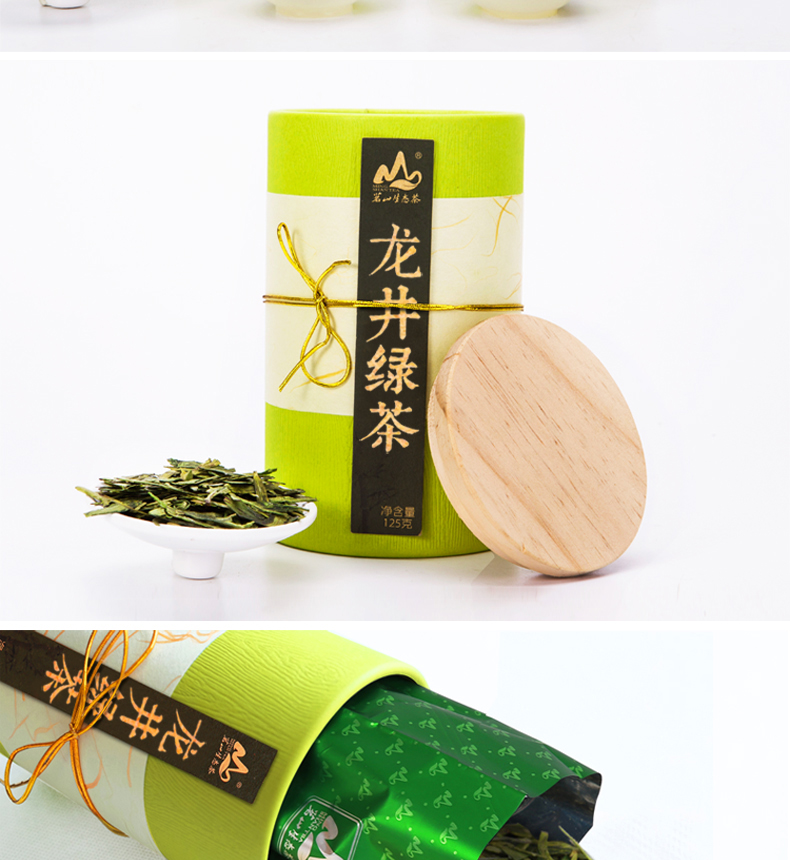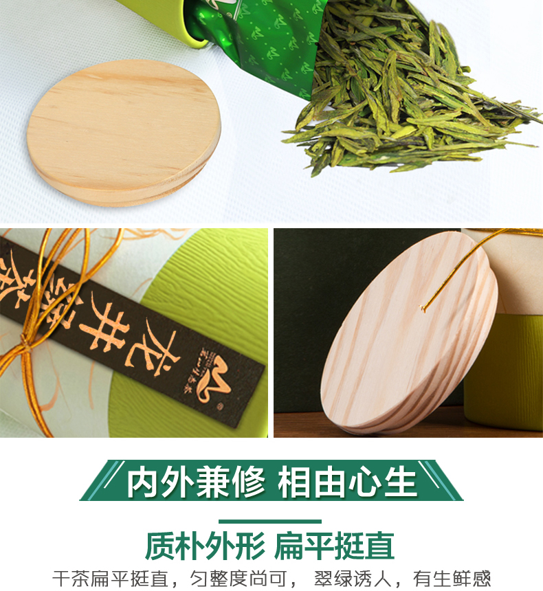 茗山生态茶 钱塘龙井茶2022春茶叶浓香型 茗茶礼罐双木罐礼盒 250g(单位:组) 绿色