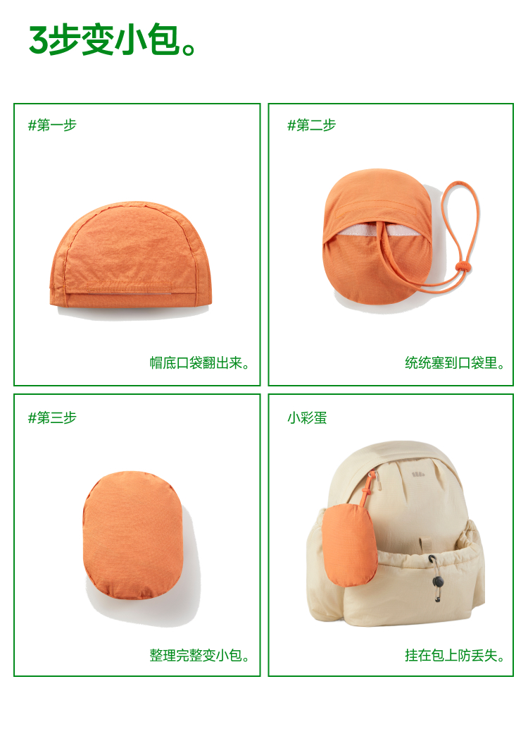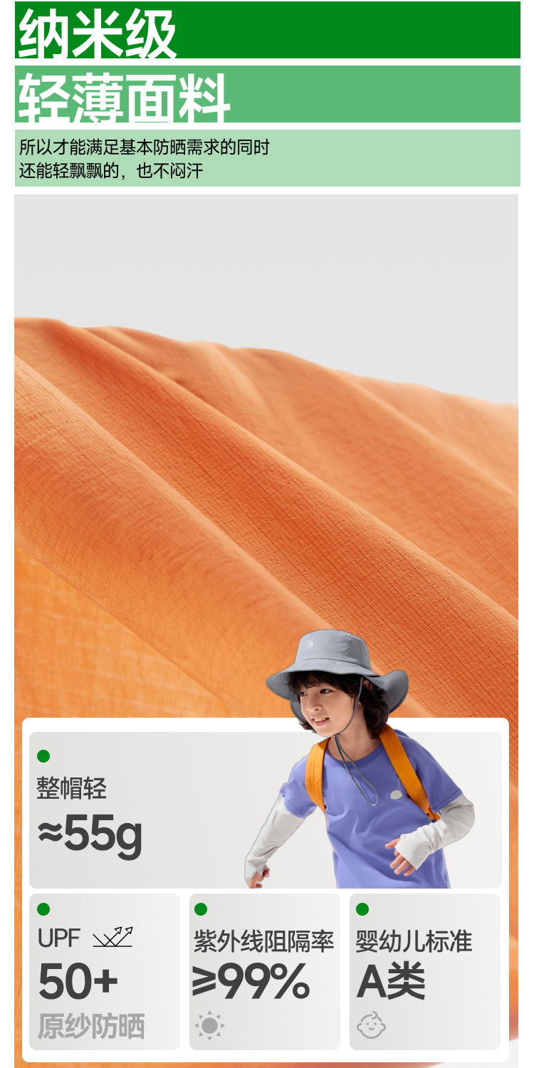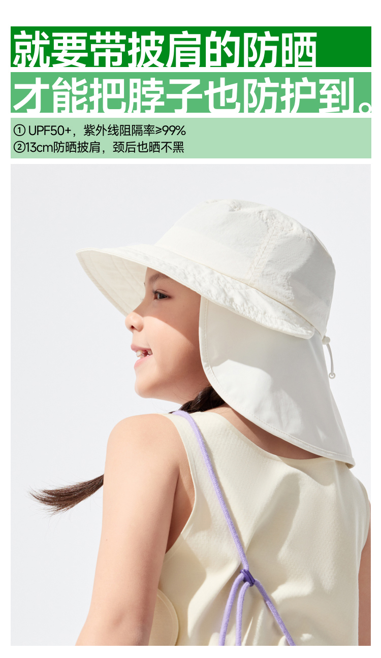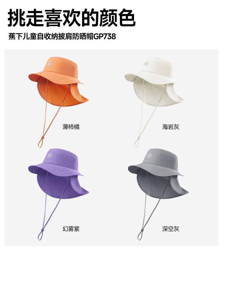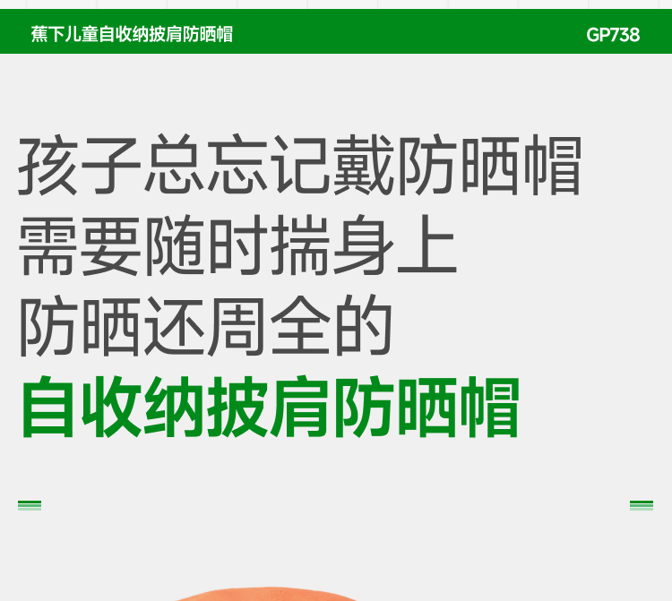 蕉下(beneunder) 儿童自收纳披肩防晒帽 GP738 适合头围48-50 薄柿橘(单位:顶)