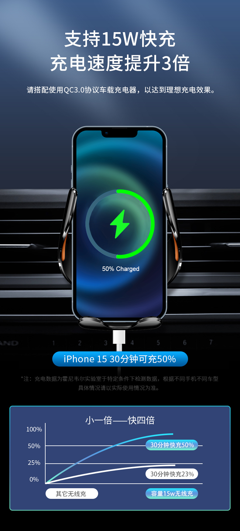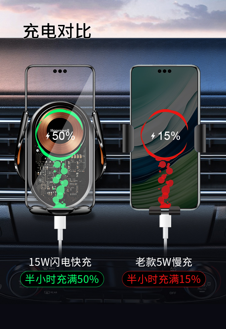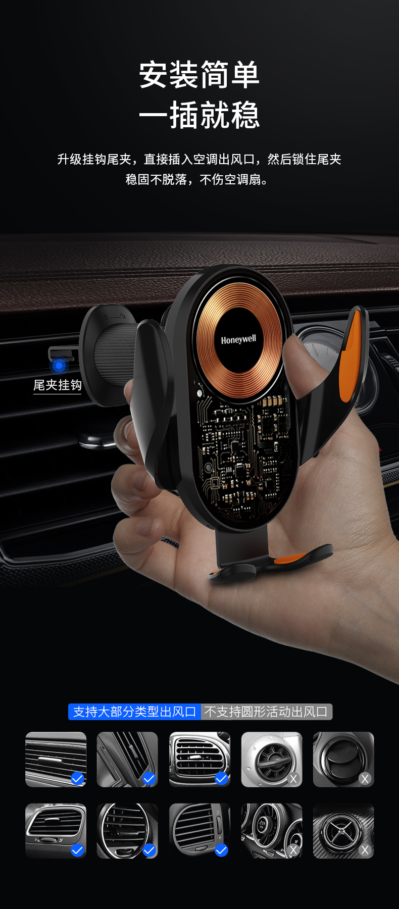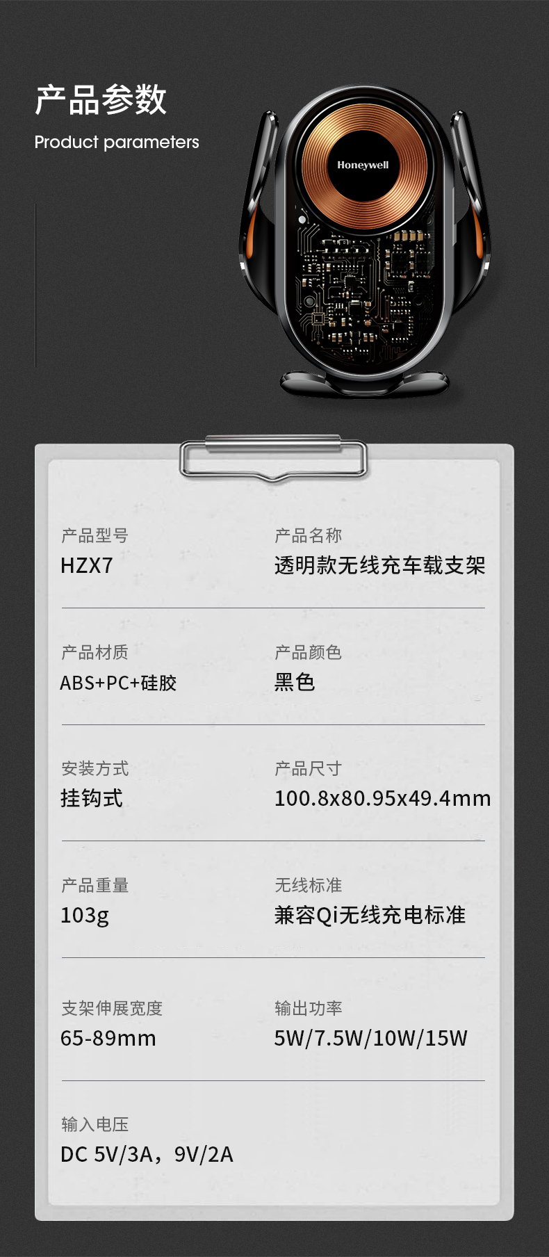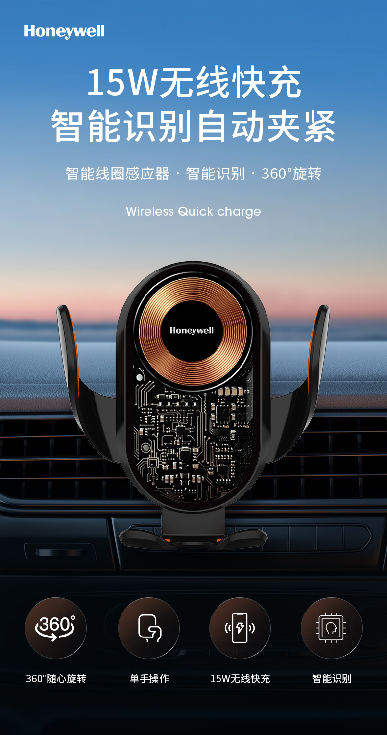 霍尼韦尔(Honeywell) 车载无线充电器汽车出风口手机支架 HZX7 15W 黑色(单位:个)