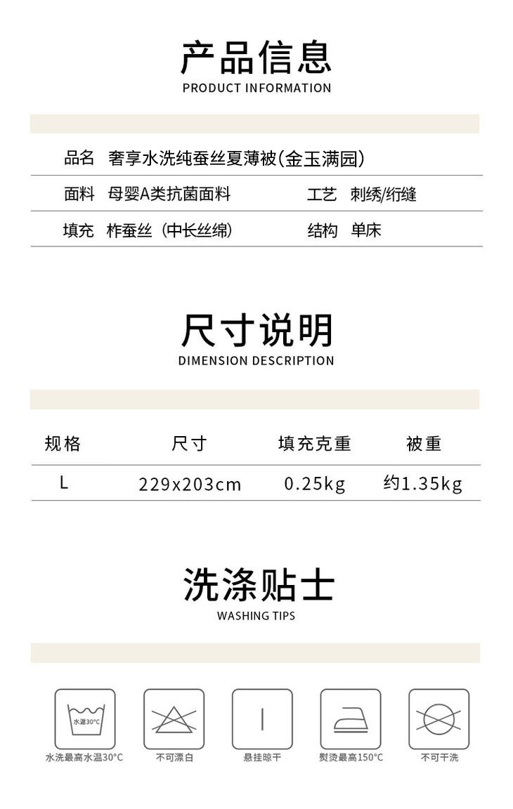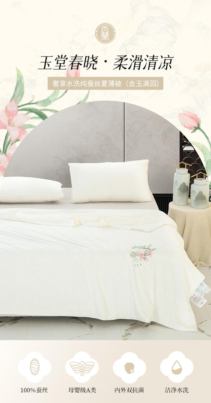 多喜爱(Dohia) 奢享水洗纯蚕丝夏薄被(金玉满园) 116011343610430 1.5M床 203*229cm 白色(单位:床)